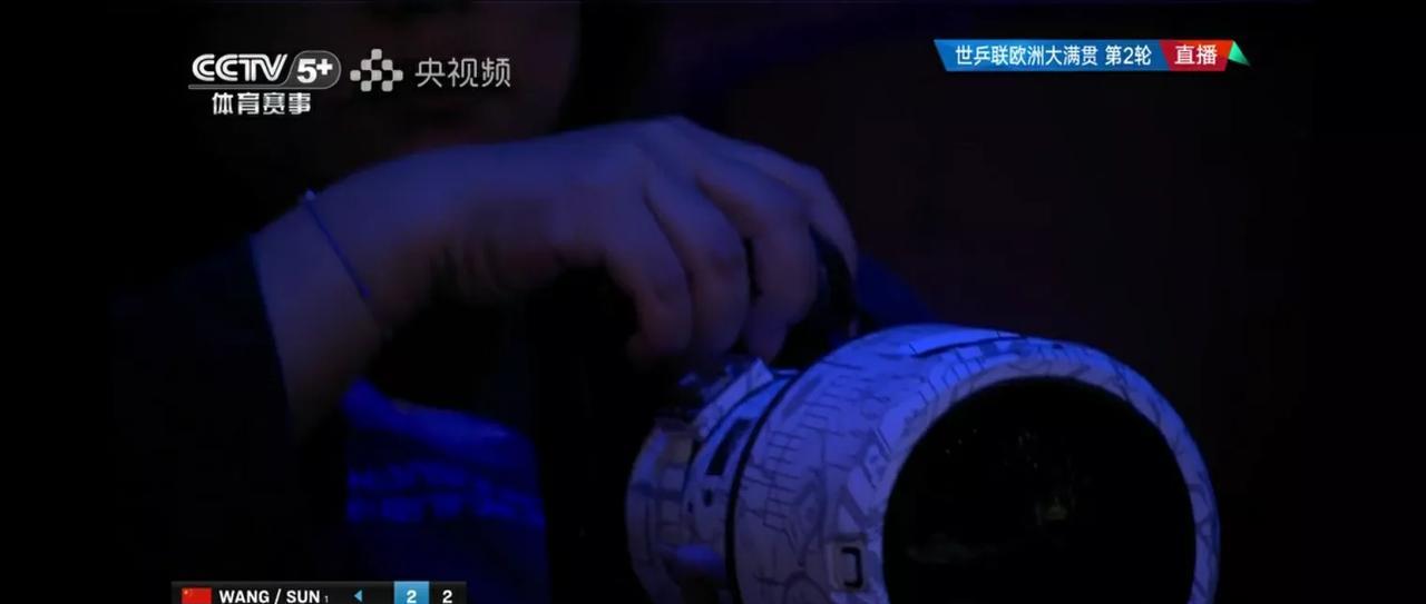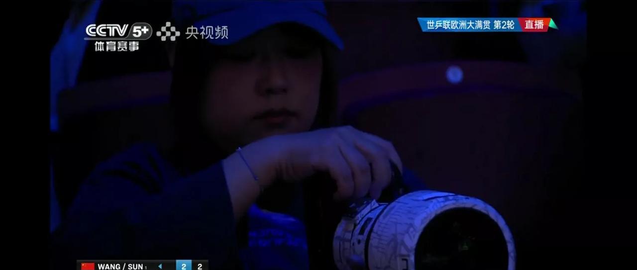 孙颖莎和王曼昱一起打女双比赛第三局比分2:0时,镜头里给到的画面上突然出现了一个圆形的物体,吓我一跳这是啥呢?随着摄像师镜头的移动上面看到了一只手,然后又看到一个人头,恍然大悟,原来是一个人在用镜头拍摄,遇到摄像师的镜头了。