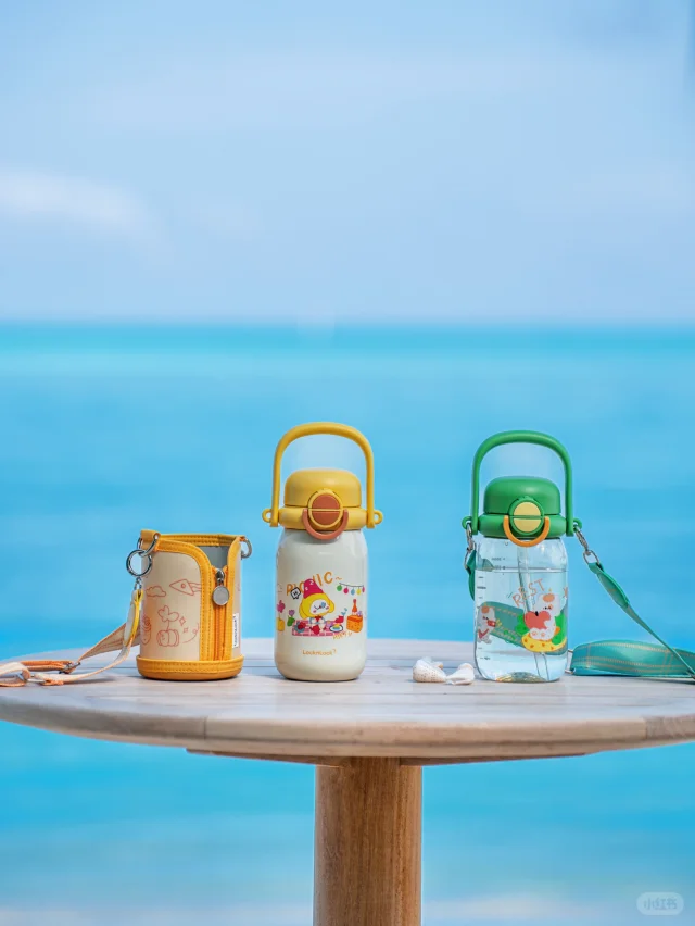 两个水杯都可以调节背带斜挎,让孩子解放双手去捡贝壳、追海浪;加宽提手自己提着也稳当。杯盖180度打开,喝水不碰小鼻子,这些细节孩子用着舒服,旅途中我们也省心。