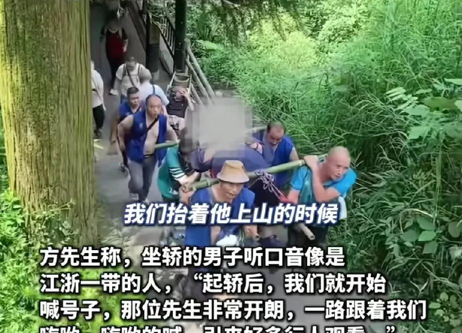 263斤男子坐滑竿上峨眉山,花费22100元雇九个轿夫轮流抬,宛如抬了个“财神爷
