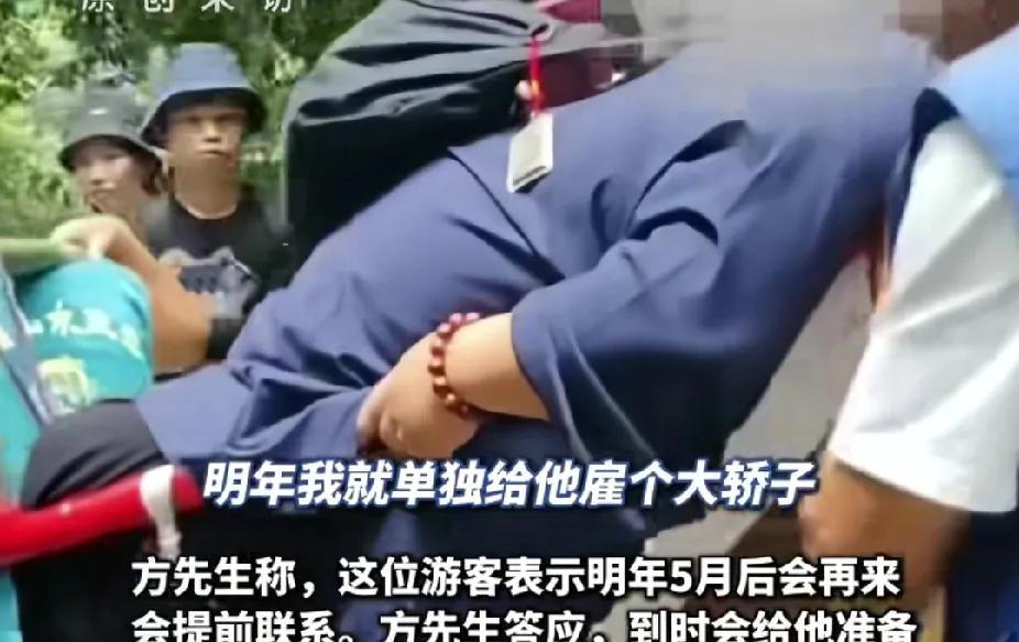 263斤男子坐滑竿上峨眉山,花费22100元雇九个轿夫轮流抬,宛如抬了个“财神爷”上山。男子脾气极好,跟着轿夫“嗨哟嗨哟”喊口号! 据轿夫描述,男子是山上拜财神爷的,听口音像是江浙一带的人。男子脾气超级好,轿夫上台阶“嗨哟嗨哟”喊口号给自己加油鼓气,男子也跟着“嗨哟嗨哟”喊口号给轿夫鼓气,下山后还给了轿夫们小费。 共耗时10个小时,往返42公里,这一路上男子与轿夫们相处得都十分融洽。男子称明年还会来,轿夫也承诺会给他准备一架大一点的轿子,这样也能更舒服一些。 每年都要上山拜财神的必定是生意人,之前一个邻居家开母婴店的,小两口每年都会爬一次泰山,俗称“还愿”,只有还了愿,才能得到保佑第二年生意兴隆。不知道你那里有没有这种说法呢?#峨眉山轿夫# #抬滑杆# #峨眉山#