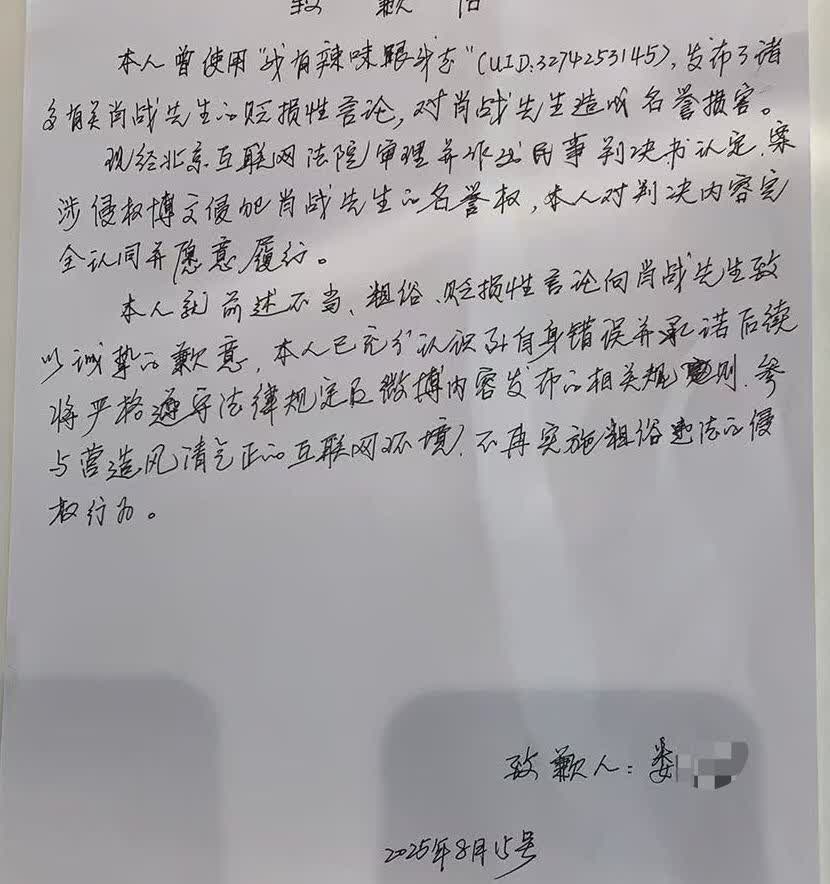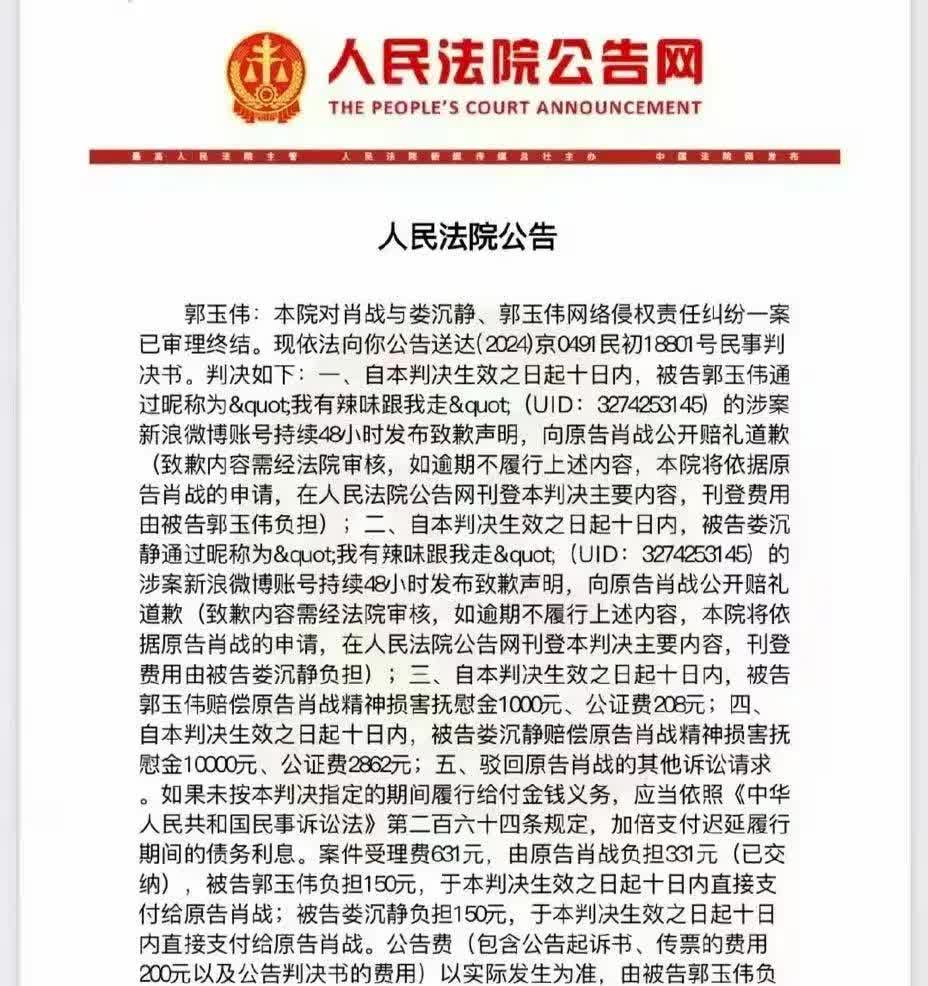 微博“我有辣味跟我走”账号已经查无此人!只剩下“我有辣条跟我走”,甚至还没满法院判决的公示对肖战道歉声明48小时,幸好我截图了。 227超话主持人郭某、娄某8.18日在微博上用账号“我有辣味跟我走”向肖战道歉。令我震惊的不是这迟来五年的道歉,而是恶意诽谤艺人,把一个身在顶流大好前途的艺人逼到几乎深陷绝境,损失的收入无法估量,结果只得到1.1万元的赔偿款和公示48小时的微博公开道歉信。 希望以后不会再有人再对他下手了,毕竟诽谤一个好艺人不仅仅只是金钱的惩罚,还有法院的传票!