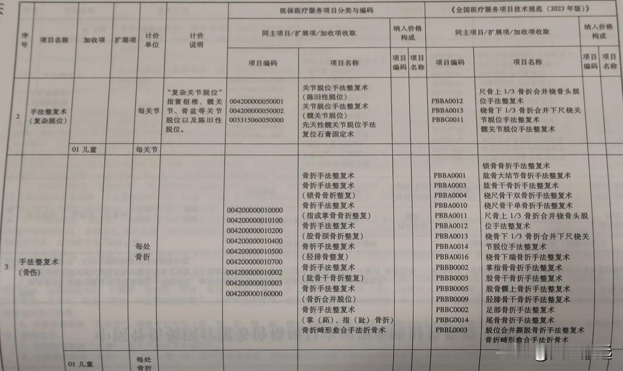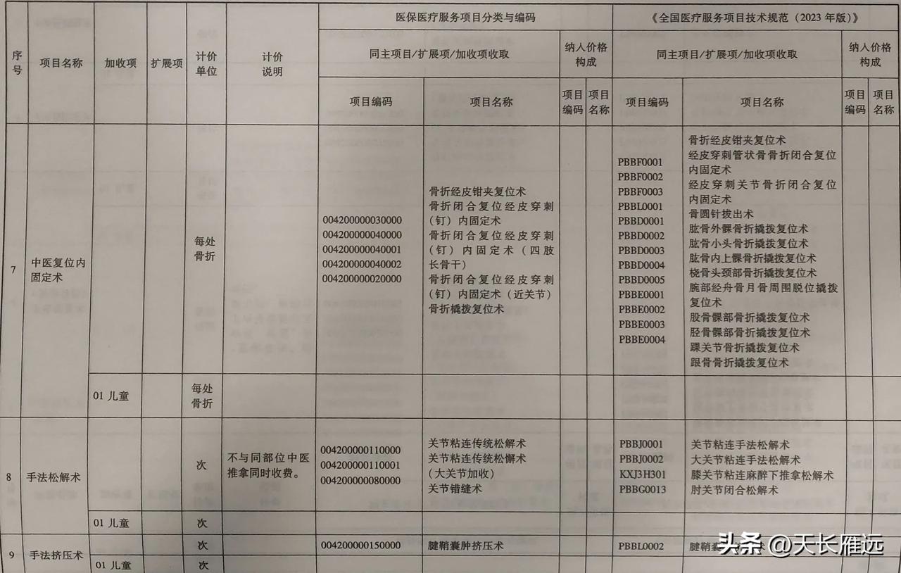 中医骨伤类医疗服务项目价格立项指南映射关系表(试行)