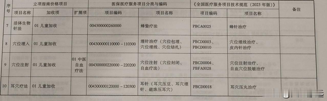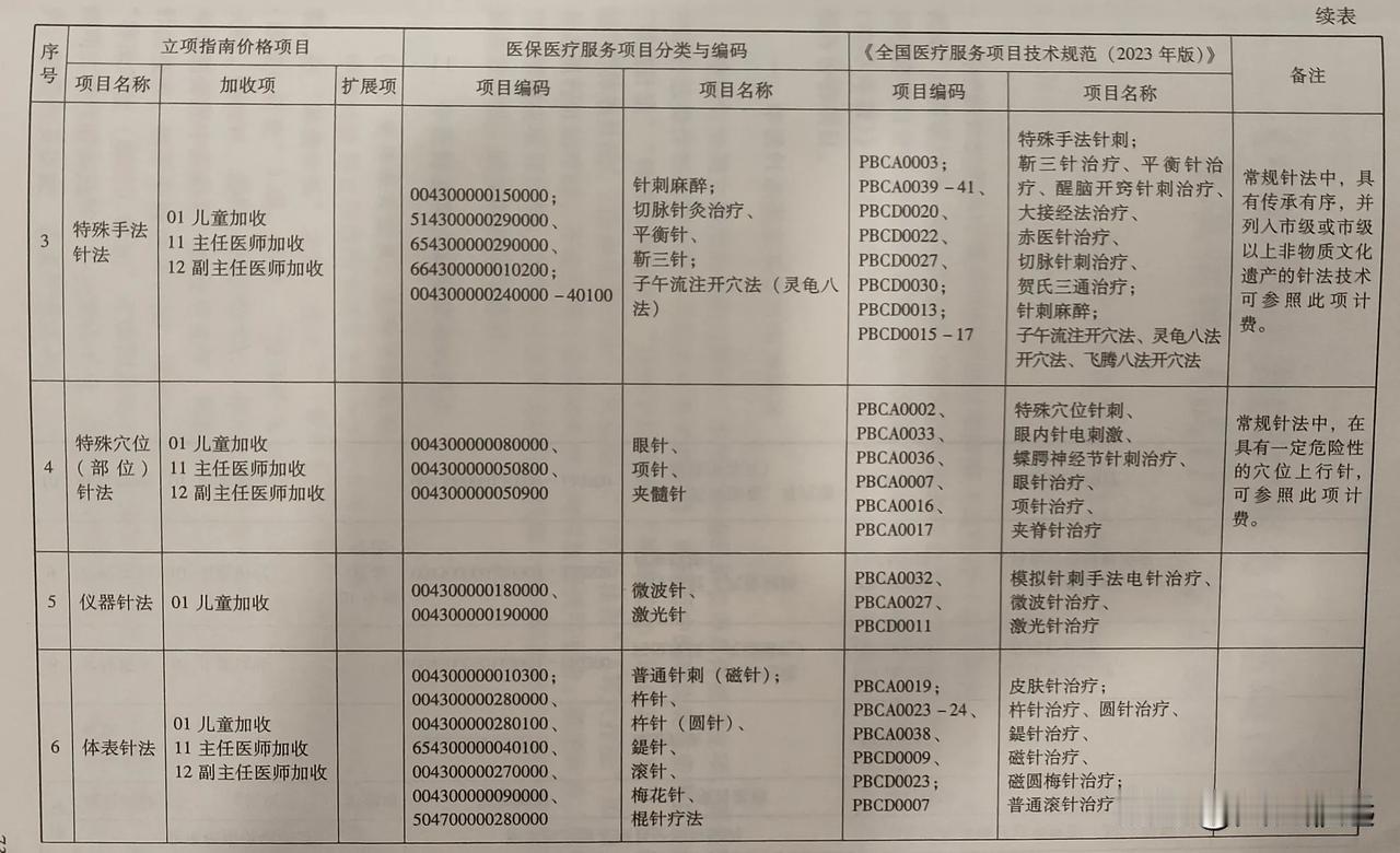 中医针法类医疗服务项目价格立项指南映射关系表(试行