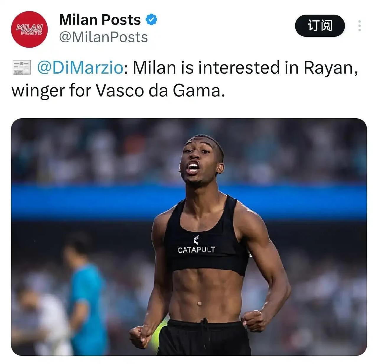 拉杨!迪马济奥消息米兰正在接触瓦斯科达伽马边锋拉杨,他是米兰的目标球员,虽然米兰管理层对外宣称,不会购买奥卡福的替补,米兰会信任丘库埃泽,但事实是米兰的绯闻边锋超过三人,他们都是米兰的目标,现在看拉杨可能性最大。为啥拉杨可能性最大,因为这个夏天迪马济奥就是神,他所报道的内容无一不中。 巴西主教练安切洛蒂说拉杨是非常优秀的球员,我准备把他招入巴西国家队,加盟米兰?这是一个不错的想法。这个拉杨如果要买现在就动手,他一直都是切尔西紧盯的球员,之前与切尔西有过接触,转会费要求并不高,但瓦斯科达伽马要求二转分成,这些条件切尔西都给予了满足,可球员犹豫他在切尔西会获得多少机会,毕竟现在切尔西大巴都是三层的,一个位置四五个人抢,拉杨肯定要考虑自己去了切尔西能不能看上饮水机。 拉杨是典型的巴西球员,数据看他擅长的位置是右边锋与二前锋,脚下灵活,带球推进能力出色,头球能力一般,射门手段多样化,拉杨被视为比较有巴西味道的巴西球员,说的是他的带球推进,浑身上下都是假动作,在巴西貌似挺管用,到了欧洲这样的球员会不会同样好用,就难说了,毕竟上一个浑身假动作的德尼尔森在西甲都不大成功。