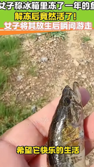 太不可思议了!”黑龙江,女子将放在冰箱里冻了一年的鱼拿出来解冻,万万没想到冰块化了之后女子惊奇地发现冻了一整年的鱼居然活了! 黑龙江那位女子大概没料到,自己冰箱里一条冻了一年的鱼,会在解冻后掀起这么大波澜。 事情说起来不复杂。 去年夏天,她捞了些小鱼,一股脑冻进了冰箱,转眼就忘了这回事。 一年后收拾冰箱,她把这些鱼拿出来解冻,本想着晚上炖锅鱼汤,却见其中一条鱼慢慢动了起来——腮帮子微微张合,没过多久,居然扑腾着活了过来。 同批冻进去的一大盆鱼里,就这一条有了动静。 她瞧着稀奇,又觉得这鱼“命硬”,没舍得下锅,捧着送到河边放了生。 小鱼一入水,尾巴一甩就游远了,看着挺有精神。 这段经历被她发到网上,评论区立刻吵成了一团。 有人说这不可能,“全世界科学家做了多少实验,没见过冰冻一年还能活的”; 有人紧跟着反驳,“南方人没见过就别瞎说,东北的老头鱼冬天冻在冰里,开春化冻就活,路边都有卖的”; 还有人扯得更远,“真有这技术,谁不想冻起来等退休直接领退休金”。 吵归吵,这条鱼的身份倒是慢慢清晰了。 它不是什么神秘物种,就是东北人常说的“老头鱼”,学名叫葛氏鲈塘鳢,还有山胖头、还阳鱼这些别名。 这鱼不算稀罕,黑龙江、图们江、辽河水系里多见,俄罗斯、朝鲜、日本也有分布,就爱在杂草多的沼泽里待着。 说它“命硬”,不是没道理。老头鱼最出众的本事,就是扛冻。 冬天水面结冰,它们能直接冻在冰里,一动不动跟冬眠似的,等春天冰化了,晃晃悠悠就醒过来了。 不光抗冻,还耐缺氧,就算水里氧气快没了,也能熬过去。 有网友说,小时候冬天最爱去冻住的小河沟里凿冰抓老头鱼,回家油炸或者香煎,刺少肉嫩,味道特别好。 还有人讲,这鱼头上有个红色的“还阳虫”,下锅前得抠出来,不然人吃了腮帮子会肿。 更有人晒出亲身经历:买的鲫鱼冻在冰箱三四天,解冻后大半都活了,不是什么新鲜事。 其实这世上,人没见过的事多了去了。 之前网上不也有过放土里几年,遇水就活的鱼吗? 生物为了活下去,能演化出多少能耐,哪是几本课本能装下的? 老头鱼在东北活了这么多年,冬天冻着春天活,当地人见怪不怪,到了网上反倒成了“违背科学”,这本身就挺让人费解的。 说起来,这老头鱼现在日子也不好过。 因为肉嫩味鲜,被人捕得厉害,加上环境变差,数量越来越少,都快濒危了。 这次女子把活下来的鱼放了生,也算是件好事。 至于那些吵来吵去的网友,或许该静下心想想:没见过的事,不等于不存在。 一条鱼在冰里冻了一年还能游水,是自然的本事,不是谁的“谣言”。 与其急着否定,不如多看看、多听听——这世上的奇迹,往往就藏在那些习以为常的角落⾥。 今天的分享到这里就结束了,大家对此事有何看法,欢迎在评论区留言和讨论,感兴趣的可以点击头像加关注,我将每日更新优质内容,我们下期见。