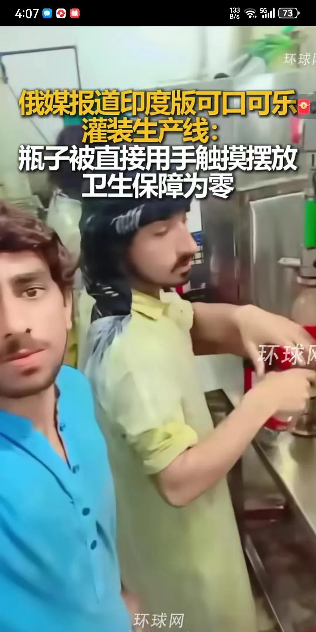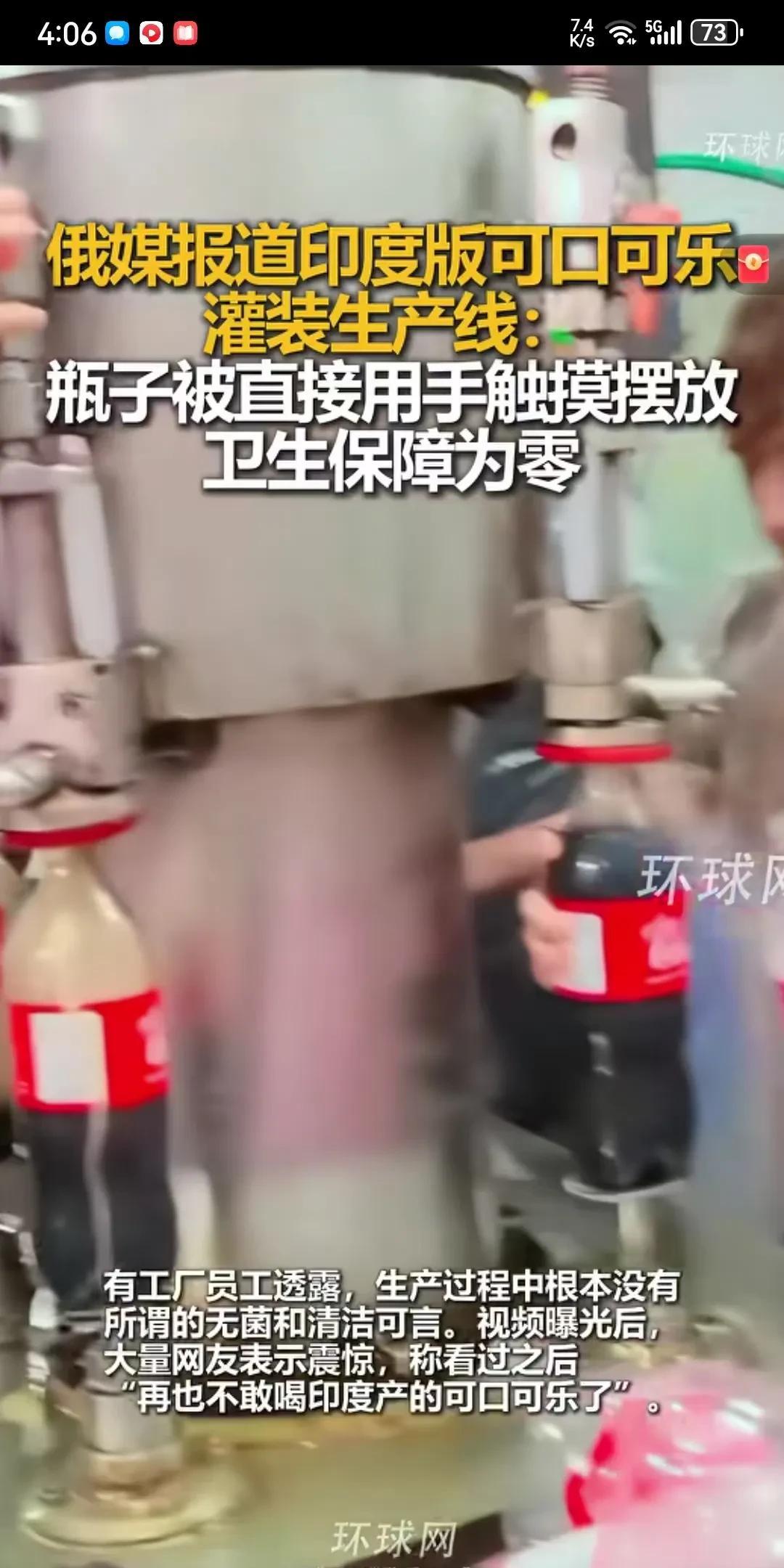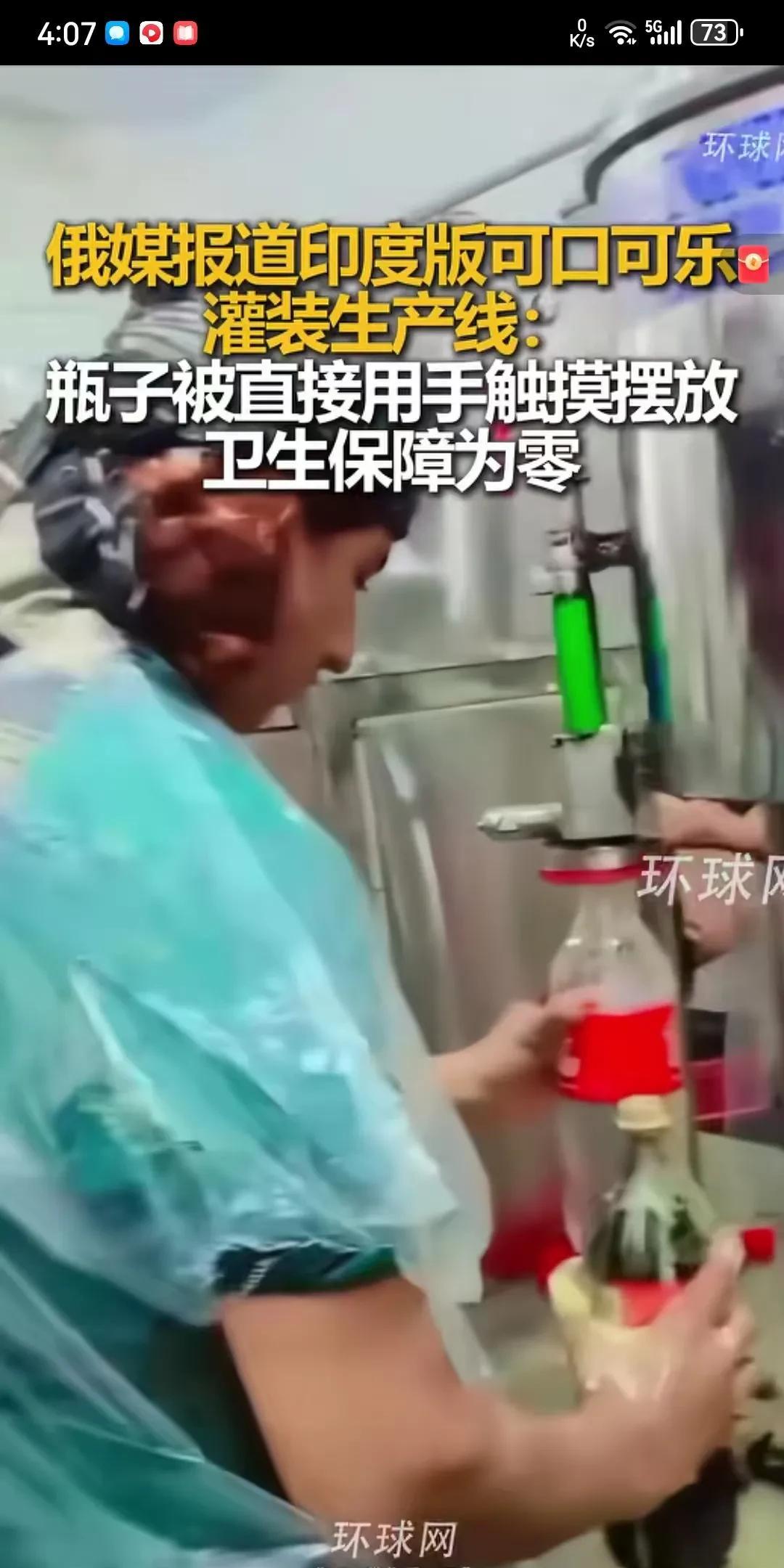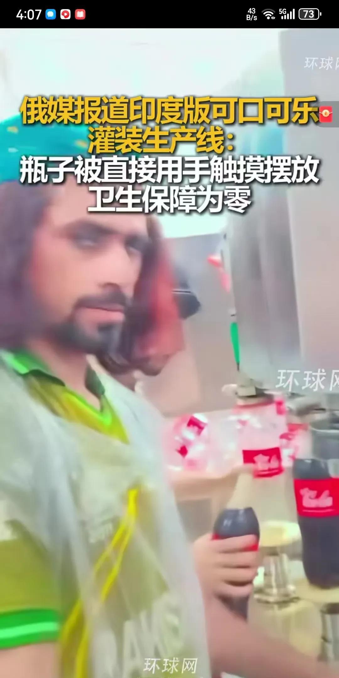 印度版可口可乐的罐装生产线,原来是印度工人手工直接拿瓶子罐装的,卫生保障为零!印度工人还把生产过程拍视频放到网上炫耀,这真的很印度!印吹整天最喜欢吹捧印度制造业要取代我们了,就印度现在这个制造业水平,想取代非洲都困难,真搞不懂那个国家的消费者敢买印度工厂制造的产品,不怕大肠杆菌超标吗!