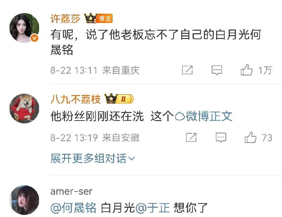 许荔莎“鲨疯了”!公开爆料说许凯在她面前说,于正一直忘不掉白月光何晟铭,直接引爆热搜,一大群网友开始讨论于正和何晟铭究竟是什么关系,为什么会用上“白月光”这个称呼? 于正和何晟铭早年曾合作过13部剧,何晟铭可以说于是于正早年的御用男主角了,也是于正让何晟铭在内地火起来的。 当年俩人的关系非常亲密,还被拍到十指紧扣的照片,也被传过绯闻,但双方当事人都没有承认过合作伙伴以外的关系。 后面何晟铭也和于正因为理念不合闹掰了,不再合作,何晟铭的感情生活也很神秘,有人说他有老婆孩子,有人说他至今单身。 如今许荔莎说何晟铭是于正的白月光,还说是许凯告诉她的,一下子把许凯、于正、何晟铭都给牵扯进来了,现在很多网友都在艾特于正和何晟铭问俩人到底什么关系,何晟铭知不知道自己是于正的白月光,可以说因为一个许凯,许荔莎直接“鲨疯了”,不管不顾的爆料,现在网上都乱成一锅粥了。