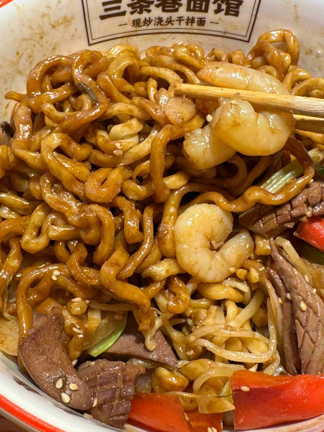 在南京吃到了这辈子最好吃的现炒浇头面!谁懂啊! 小公鸡拌面必须冲🐔 鲜活的小公鸡现点现炒,大火爆炒出来的浇头带着锅气香,鸡肉嫩到轻轻一抿就脱骨,辣度刚刚好,拌着Q弹的面条吃,一口就上瘾! 腰花虾仁拌面也超绝🦐 腰花一点腥味都没有,滑溜溜的超嫩,虾仁个个饱满鲜甜,浓油赤酱的味道裹着面条,每一口都是满足感~ 吃完连汤都想喝掉! 就在新街口附近~ 来南京不吃这碗面等于白来!信我!😘