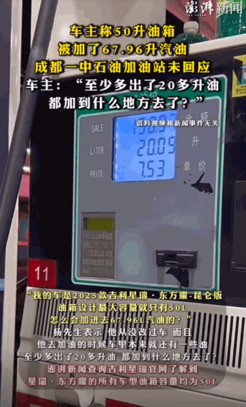 “我这车油箱明明只有50升,你们凭什么加进去67升?”最近,河南郑州一男子遇上了闹心事。