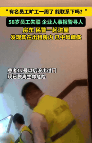 不幸中的万幸!浙江桐乡,一58岁男子连续几天都没去上班,企业人事察觉不太对劲,选