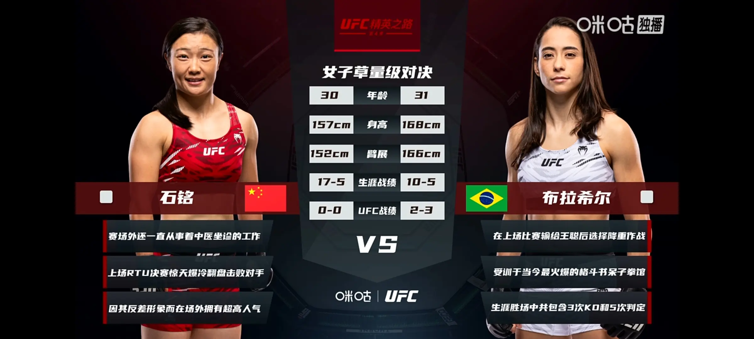 体格差距太大。综合格斗 ufc 石铭 首秀败了