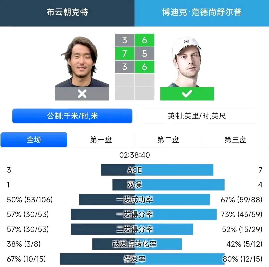 今晚两场男子都没能带走胜利:吴易昺很遗憾、小布很聪明…… 美网资格赛决胜轮,吴易昺3-6/2-6不敌发球大炮基姆,无缘正赛。收获16分、57200美元。 温斯顿塞勒姆1/4决赛,布云朝克特3-6/7-5/3-6不敌范德尚舒普,无缘四强。收获50分、20860美元。 小布赶紧去法拉盛吧,省点儿力气也好,倒是范尚书这赛程,补赛完又得赶半决赛,无论输赢都几乎要无缝衔接美网,第一轮就遭遇鲁内。