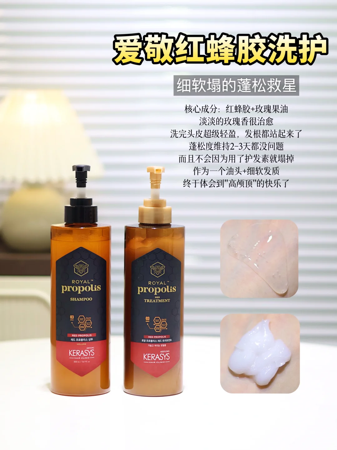 最新入的红蜂胶,简直是细软塌的福音! 核心成分:红蜂胶+玫瑰果油,淡淡的玫瑰香很治愈!洗完头皮超级轻盈,发根都站起来了!最惊喜的是蓬松度能维持2-3天,而且不会因为用了护发素就塌掉。作为一个油头+细软发质,终于体会到"高颅顶"的快乐了!女团空气感Get~