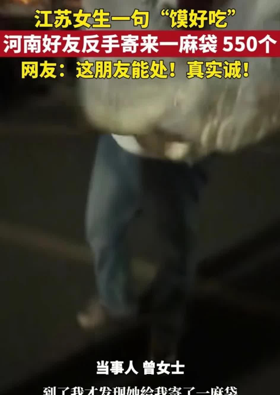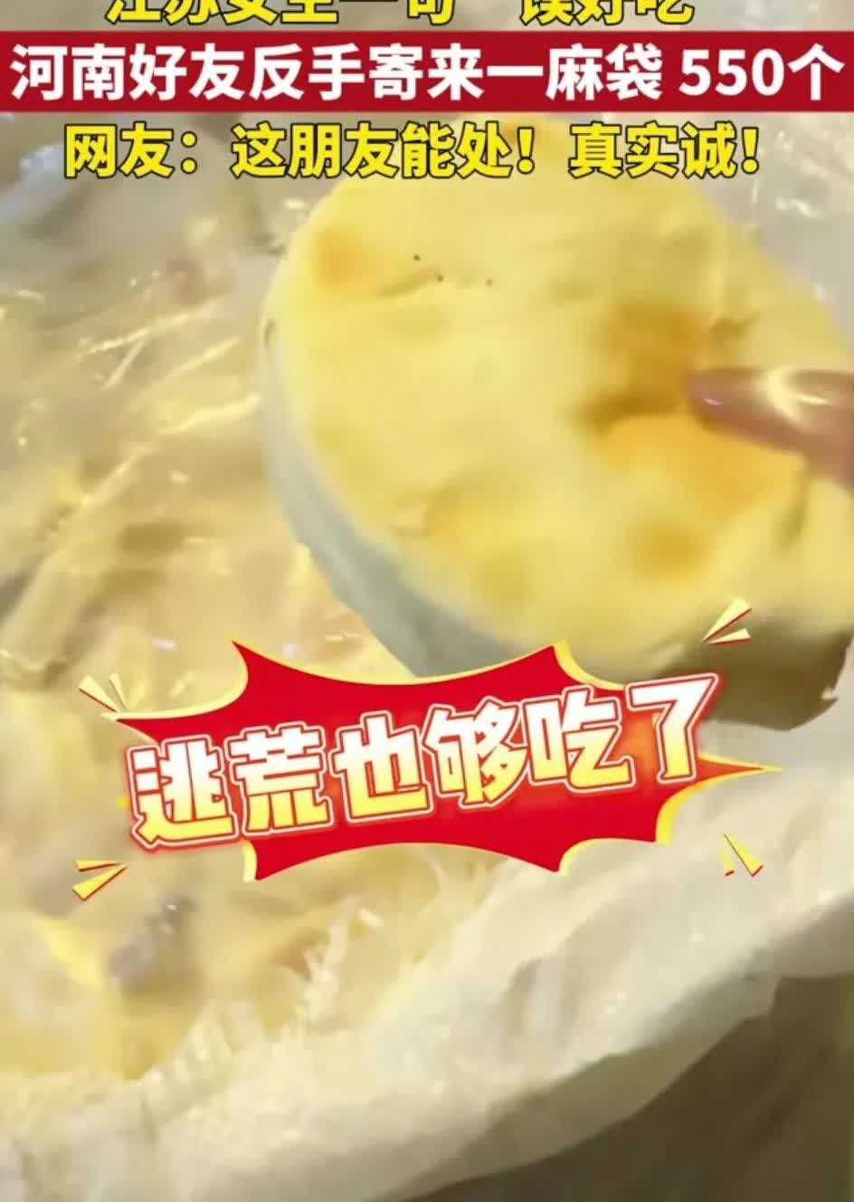 “这朋友够义气! ”江苏镇江,女子随口说了一句馍好吃,让她朋友再给她寄一点,万万没想到,当她去拿快递时,眼前的一幕令她傻眼了! 原来,女子那远在河南的朋友这天寄了点她们家乡的特产馍馍给她吃,女子尝试过后觉得还挺好吃的,于是便叫朋友再给她寄点来,朋友欣然答应。 没多久快递就到了,当女子去快递站拿快递时,看到眼前的一个大麻袋人都懵了,她一开始都怀疑是不是快递公司弄错了,可检查了一下信息后发现都对得上,麻袋里也是馍馍,再跟朋友确认之后她也是真的傻眼了。 女子怎么也没想到,自己叫朋友寄馍馍给她吃,没想到对方竟然寄了这么多,女子数了一下发现整整有550个馍馍。 这么多馍馍光靠她一个人不知得何年何月才能吃完,于是便将这些馍馍给自己身边的朋友每个人分了些。 事后女子将此事发布到网上,直呼自己这朋友能处,够义气。