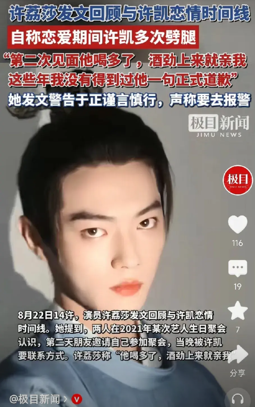 许凯真的要塌房了吗? 天哪,我还挺喜欢看他的电视剧的, 我是看他演的骊歌行入了古偶的坑, 那种帅帅的,坏坏的深入人心啊! 还有后来和谭松韵的《你比星光美丽》, 和杨紫的《承欢记》都是那么深情的角色, 这样的消息爆出, 说实话这些电视剧真的有点出戏了!