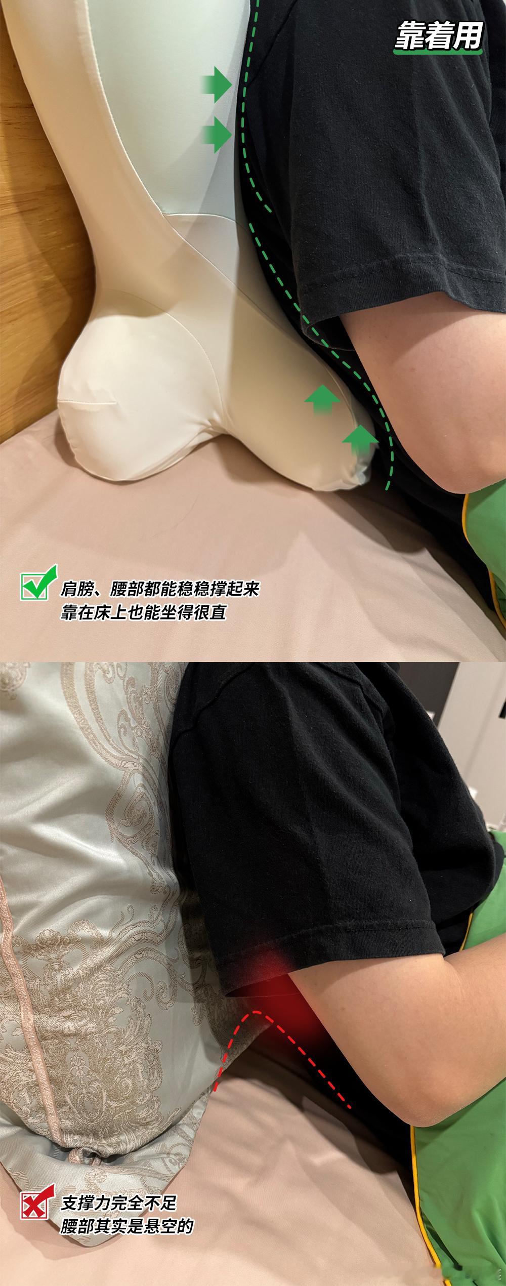 睡前往上靠点,把它垫在脖子后,那个弧度刚好贴合脊柱曲线,腰背有了强力支撑,紧绷感瞬间卸下,刷手机轻松不少。比我以前垫两三个枕头稳当、踏实多了。