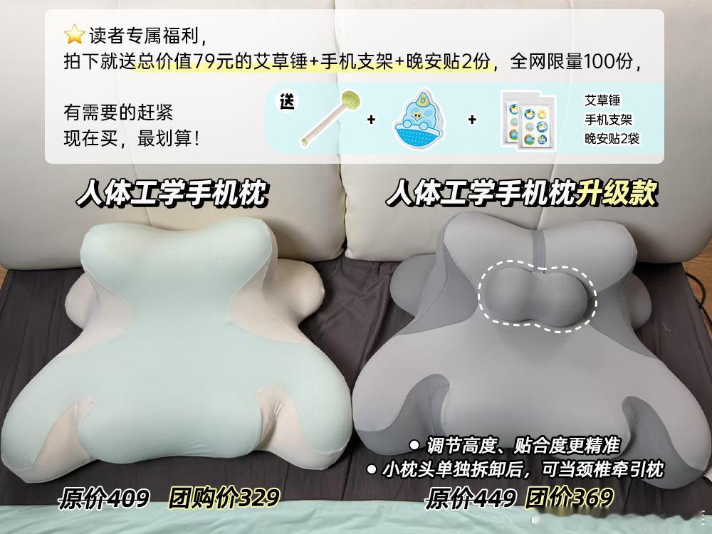 算笔账:这一个手机枕,相当于护颈枕+人体工学腰靠+趴睡枕,三合一! 省钱省空间,实用主义首选。