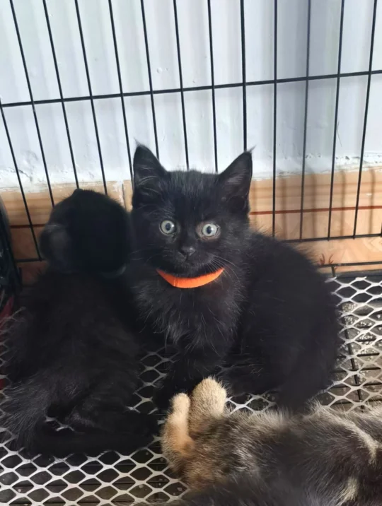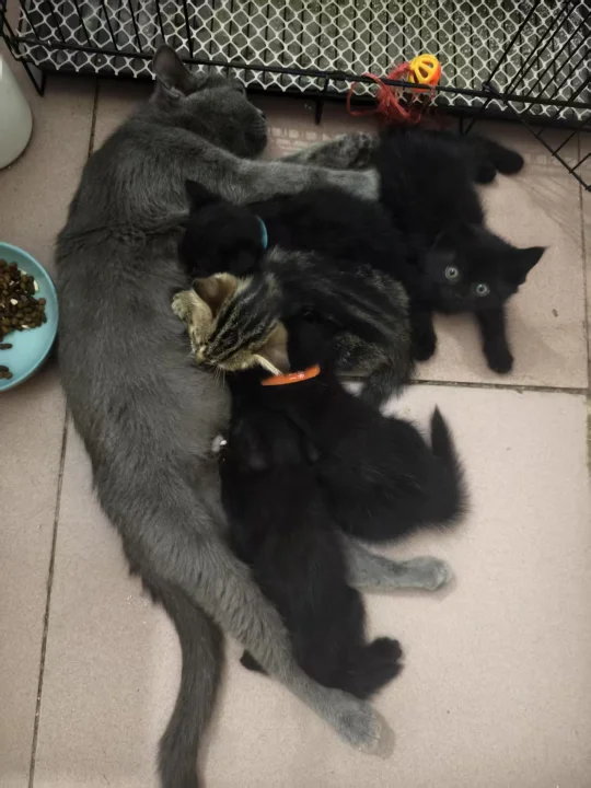 一窝小黑来了,总共五只黑➕一只狸花,中长毛,圆脸超级可爱,而且都有聪明毛。猫妈妈是只蓝猫,还在吃奶,但是小猫能吃辅食猫粮和会用猫砂盆,喜欢的赶紧联系我,手慢就没了。领养需要符合领养要求。对猫咪不离不弃,科学喂养,家里全屋封窗,需要签订领养协议。