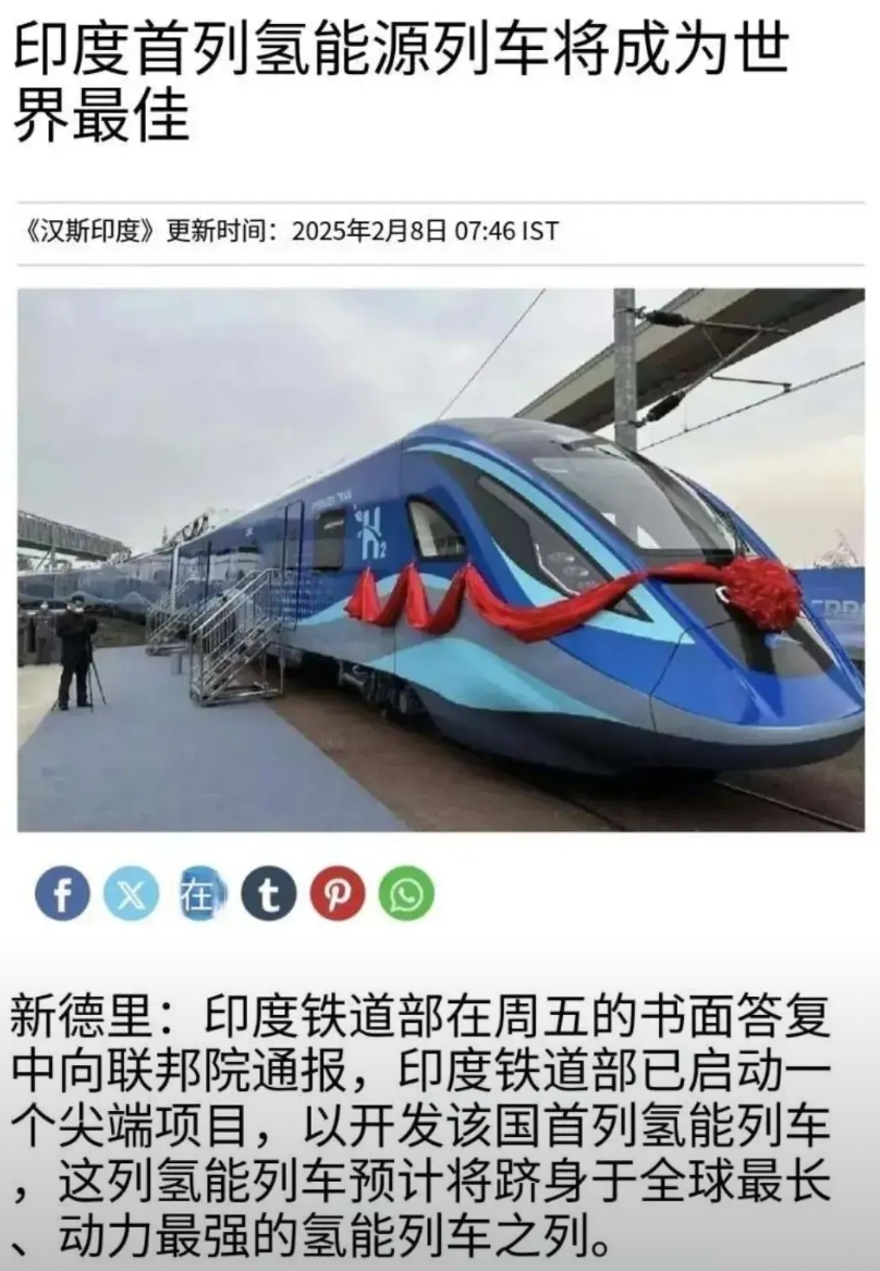 二月份的时候,《汉斯印度》报道印度将启动研发氢能源列车的计划,然后他们配的图片,