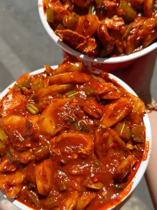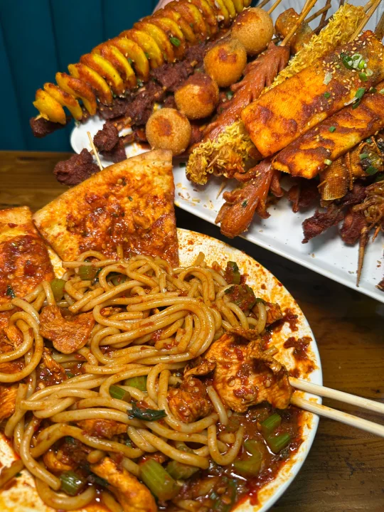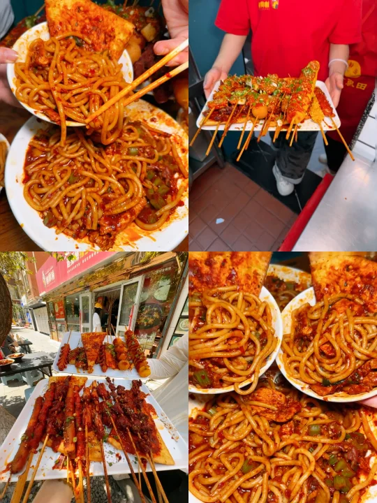 每次来都喜欢坐在门口吃的店~ ✅串串🍢品种hin多,码得整整齐齐的很好挑选,炸好后外皮酥酥的,裹着浓稠的酱汁,吼吼吃啊!😘 ✅他家的爆炒手艺hin合我的米粉胃,中辣程度刚刚好,吃完嘴巴不会🈶️怪味道,好吃😋不辣胃。 我一般都喜欢😘点牛炒🐮的,里面肉炒的焦香,都是大片大片的,芹菜也脆脆的,米粉酱料把粉裹的🈵️🈵的,嗦一口好爽😄,平时也会路过带回家边刷剧边吃,分量多,性价比高高~ ✅香辣炒馕浸泡好酱汁,太哇塞了🥰 ✅一家亲大杂烩是我和家人一起逛街的时候,路过就会点一份的哦,各种料都可以品尝到,再搭配一些麻辣串,来杯冰镇小饮料🥤,果然是蕞佳🅱️吃傍哦