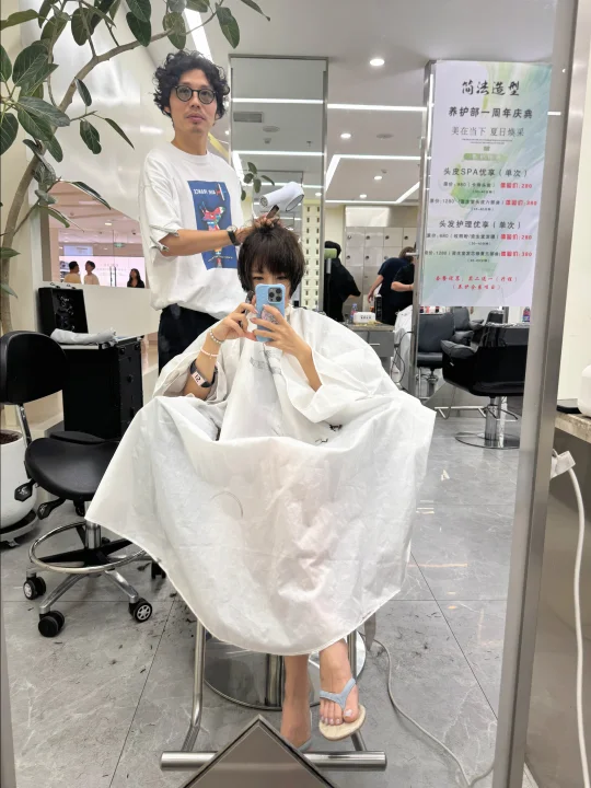 日常碎片 理发 剪头发 每次去理发店都是一场赌博 这次更短了,因为想起了不起的盖茨比里面的黛西,那个短发太美了!想cos一下😳最好的赞美就是模仿吧…… 🌟🌟🌟 灰色短袖是lululemon 白色真丝吊带是doen 白色短裤是健身穿的bm