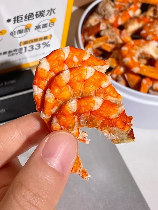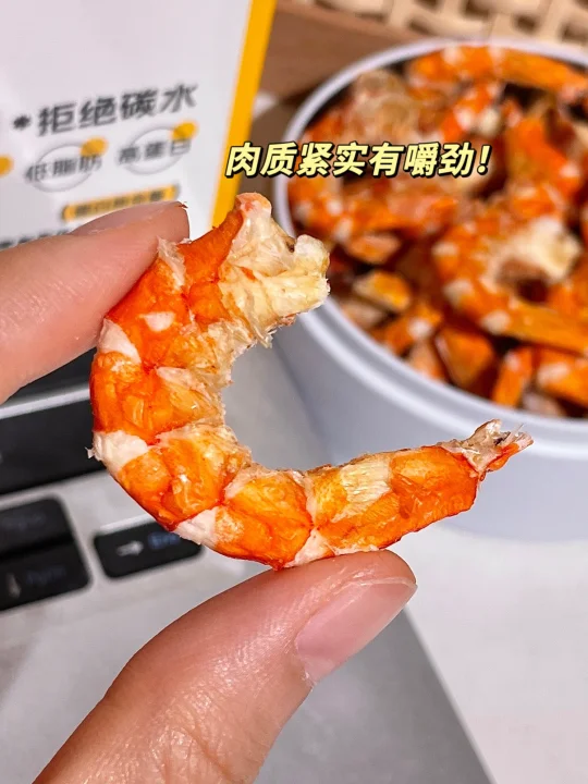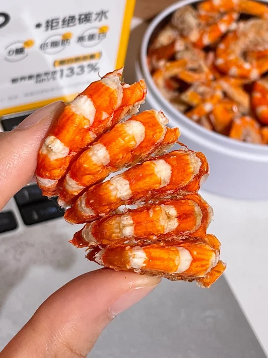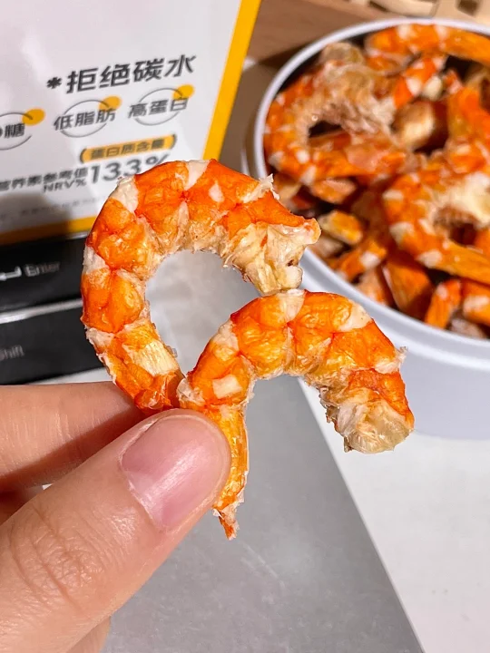 水一方0糖烤虾回购无数次了…… 每次都会被惊艳到!怎么可以这么鲜! 配料表就只有海虾🦐没乱七八糟的添加! 每一个虾的个头都很大颗饱满!肉质紧实有嚼劲! 还有淡淡的咸味,越嚼越香! 很适合嘴巴寂寞的时候当做小零食!
