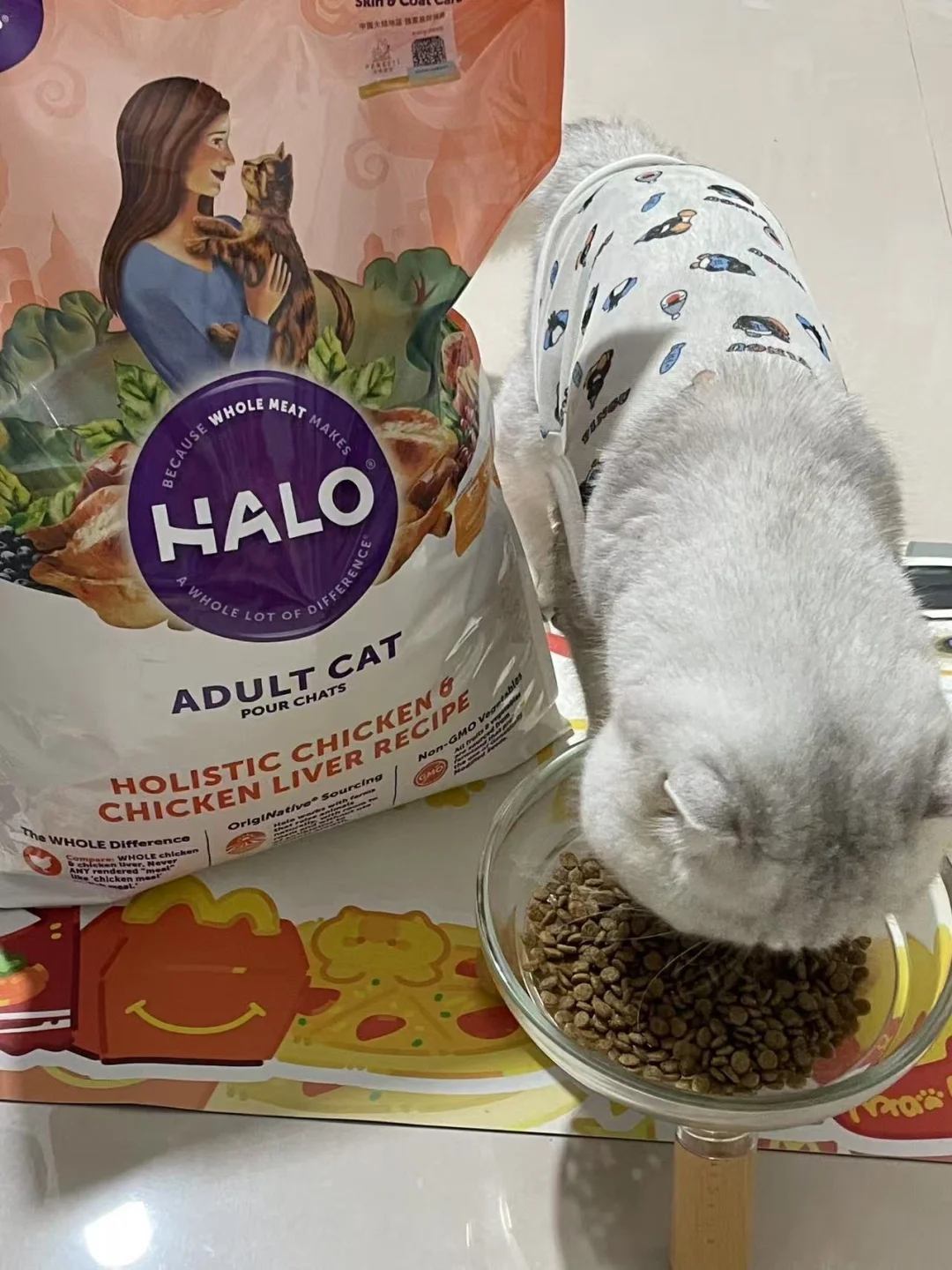 有小猫的日子真的治愈又幸福 养小猫当然想给它最好的生活 也换过很多进口国产粮 长期吃的只有halo自然光环 猪咪很爱吃,粑粑也一直很健康~ 就是在这么吃下去,得给小猫换健美粮了[偷笑R]