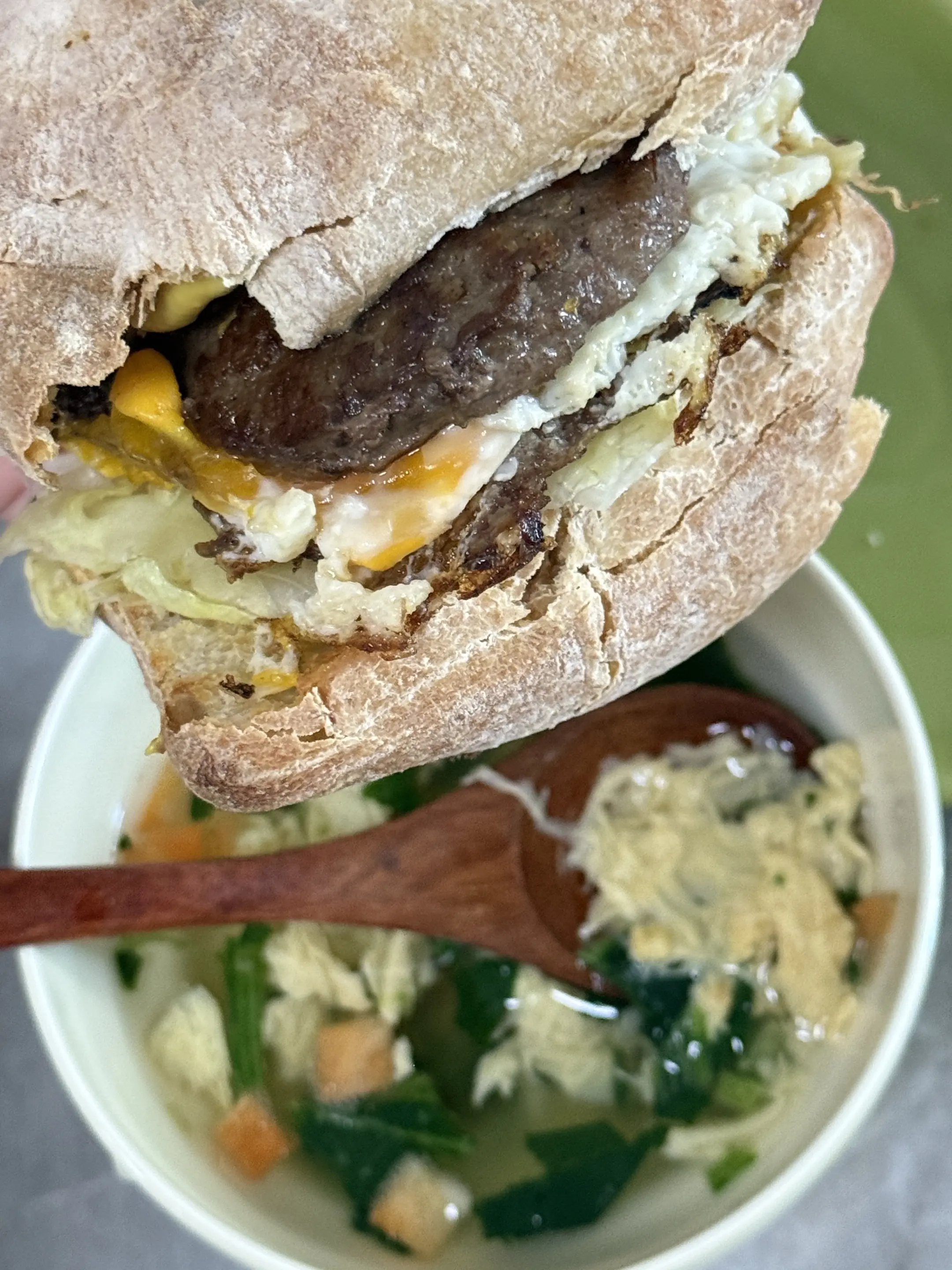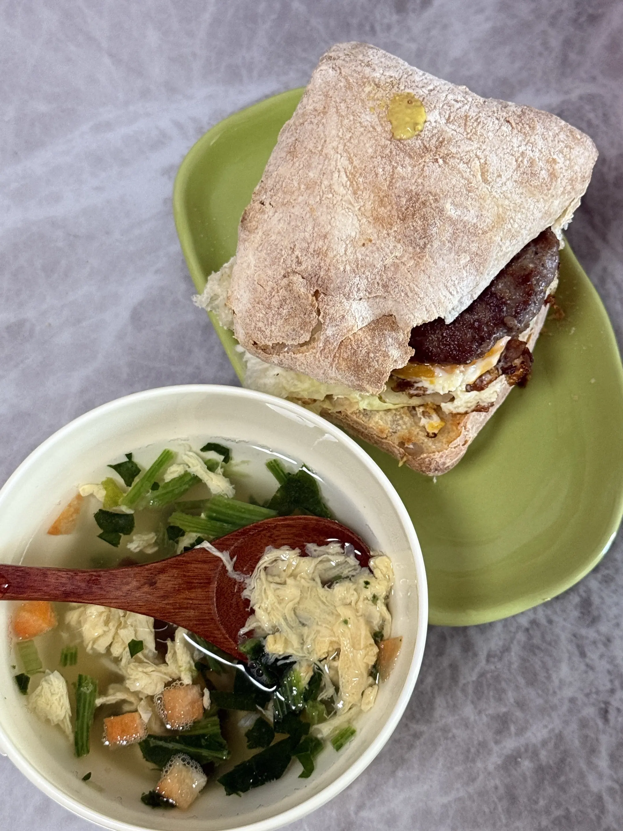 今日午饭:牛肉恰巴塔➕蔬菜汤