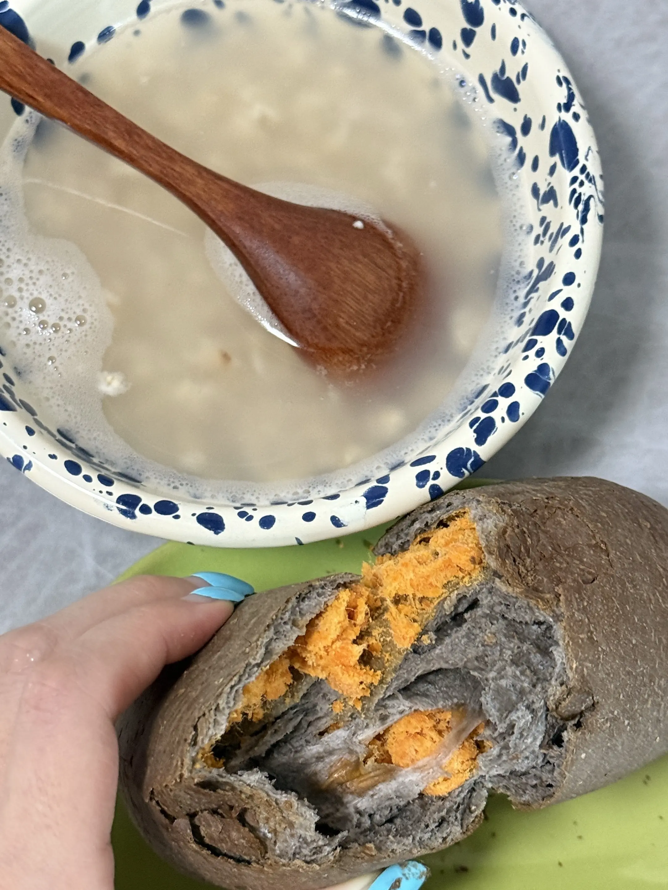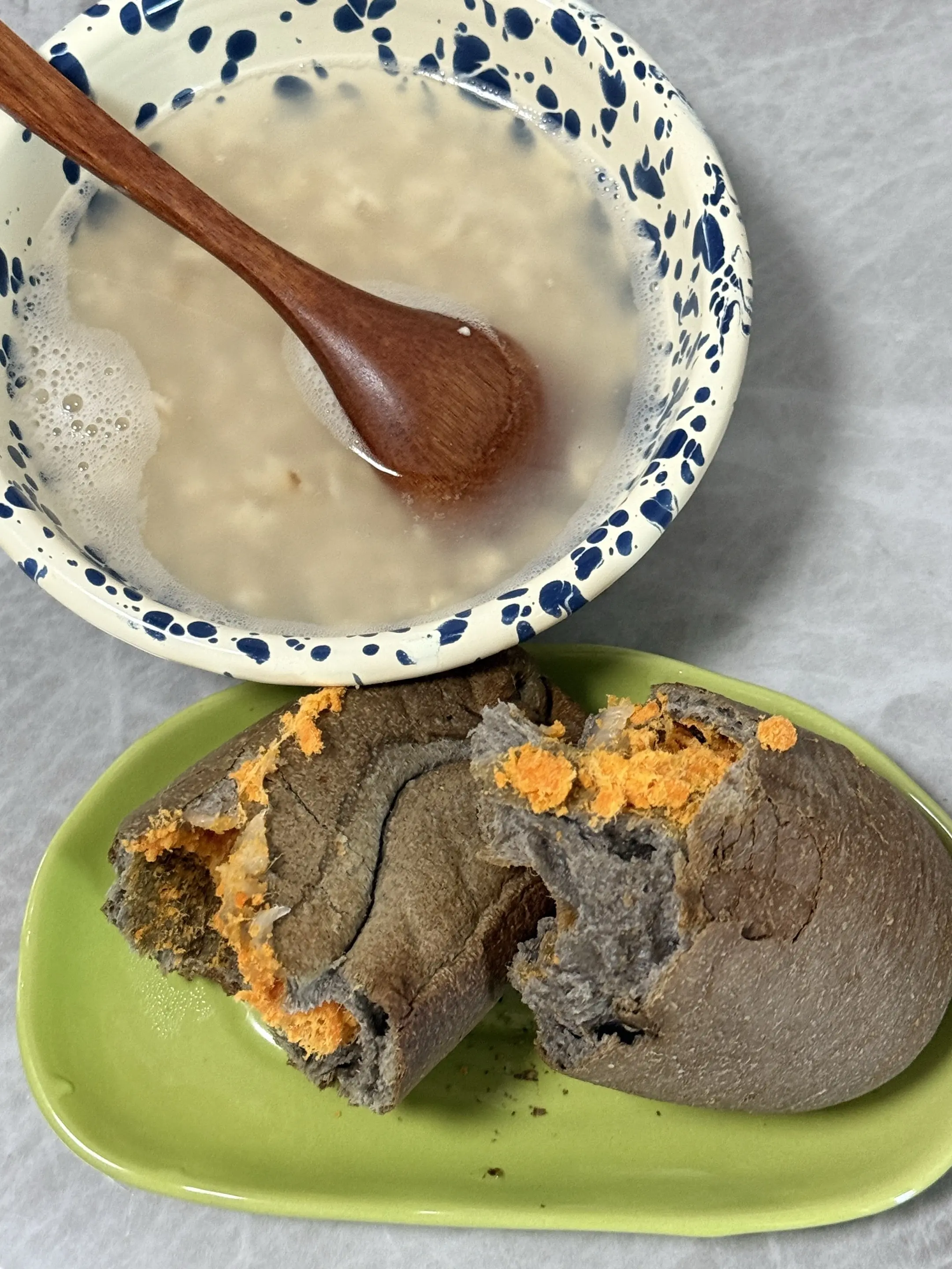 今日早餐:麻薯欧包➕燕麦片
