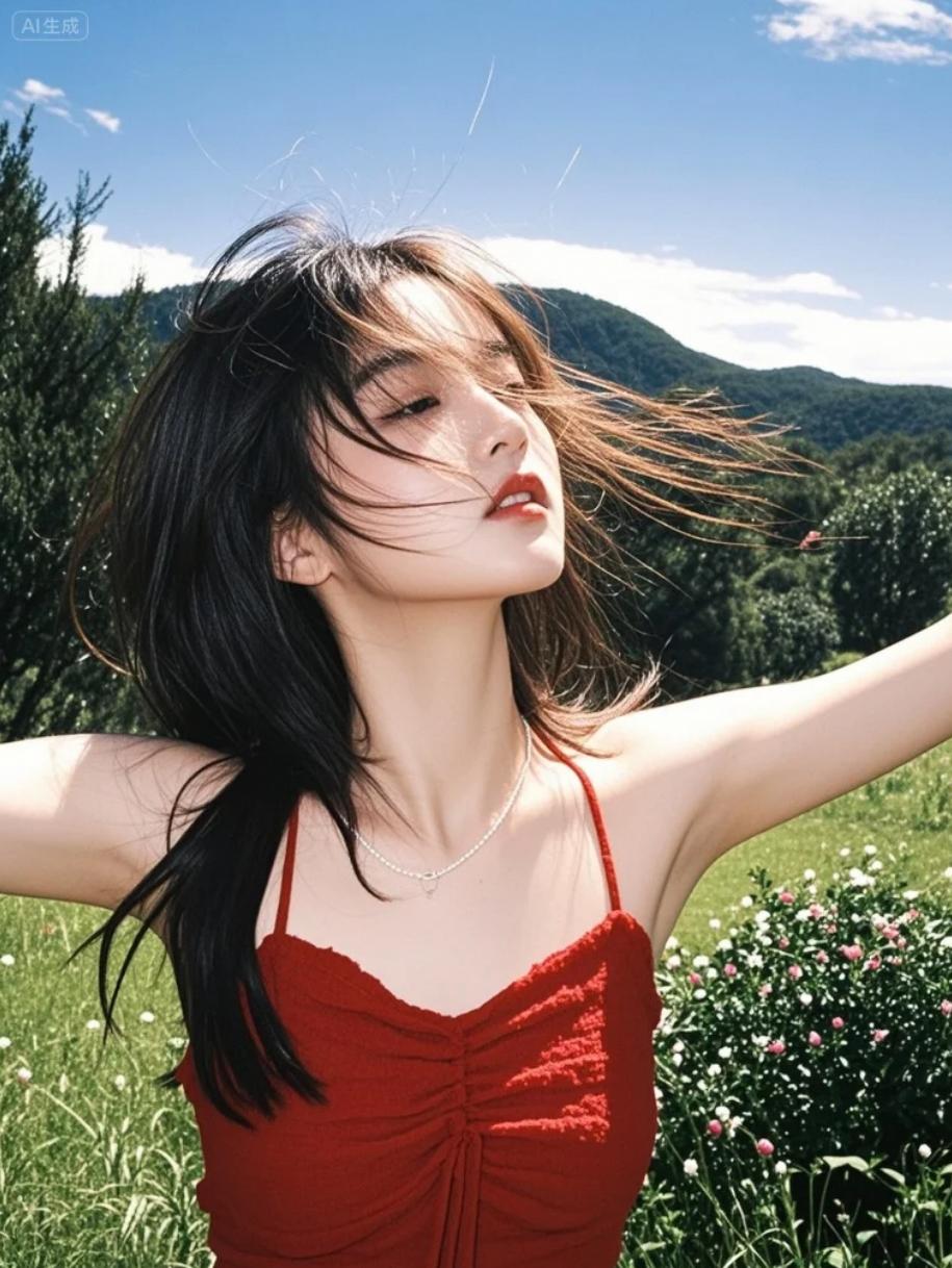 风之信使: 长裙猎猎,她乘着山风,传递远方的讯息。