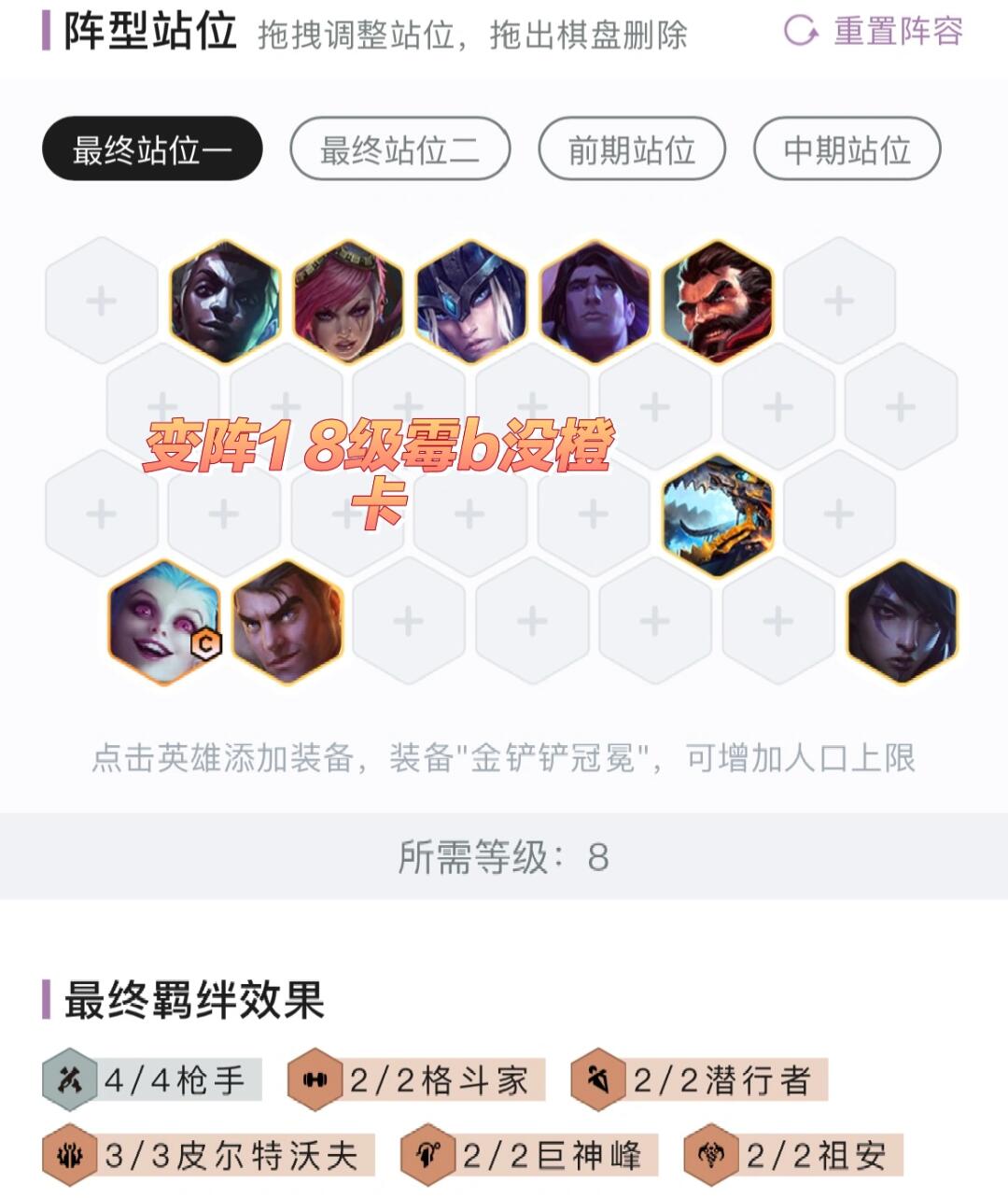 [害羞R]哈喽,大家好,最近部分小伙伴反应金铲铲阵容代码问题,今天更新完之后,小猪会去一个个挨着设置,预计明天或者后天会做一个合集出来。