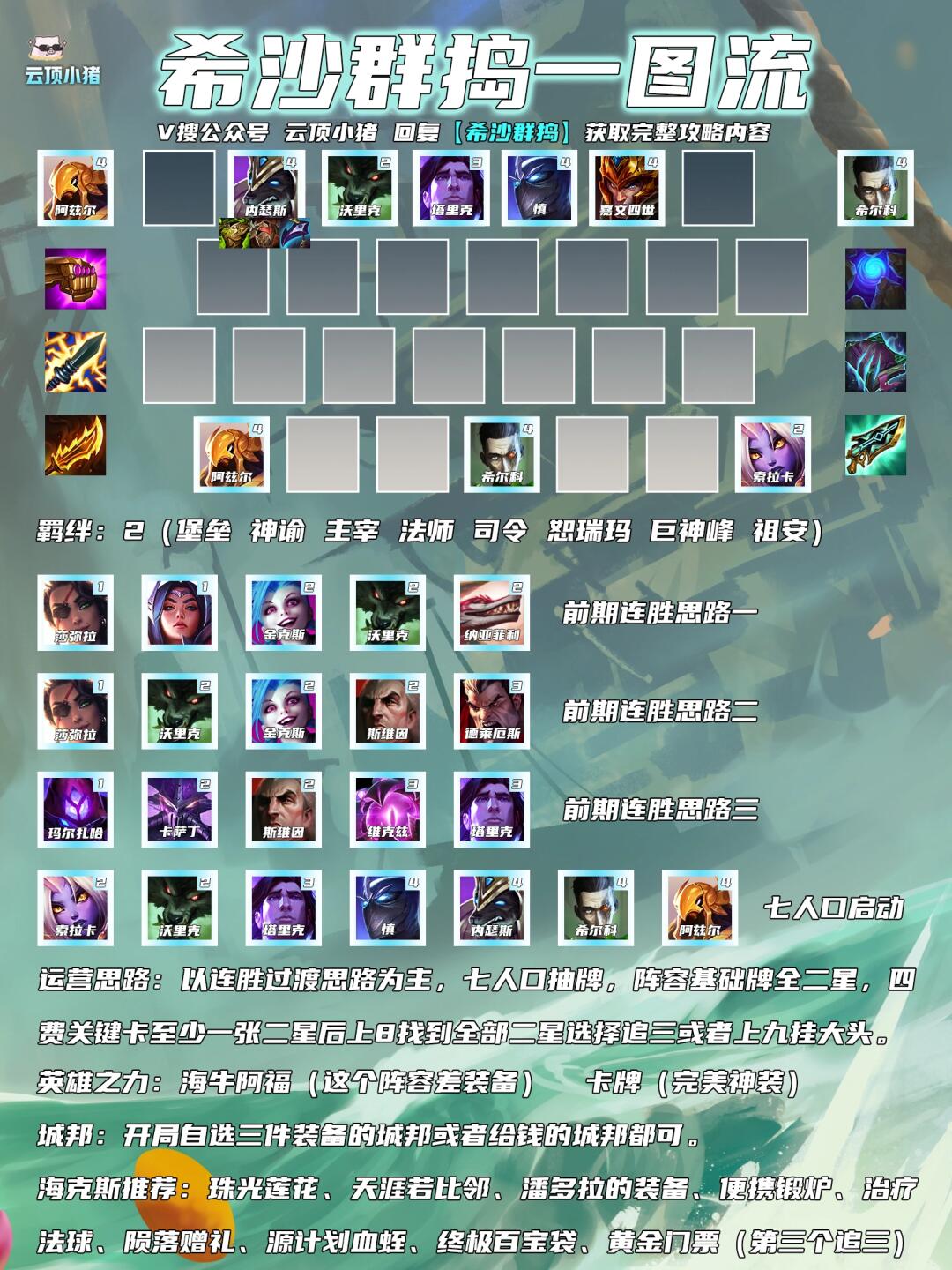 2、这个阵容非常依赖装备,英雄之力/海克斯至少拿一个给装备的,或者玩给装备的城邦也不错。
