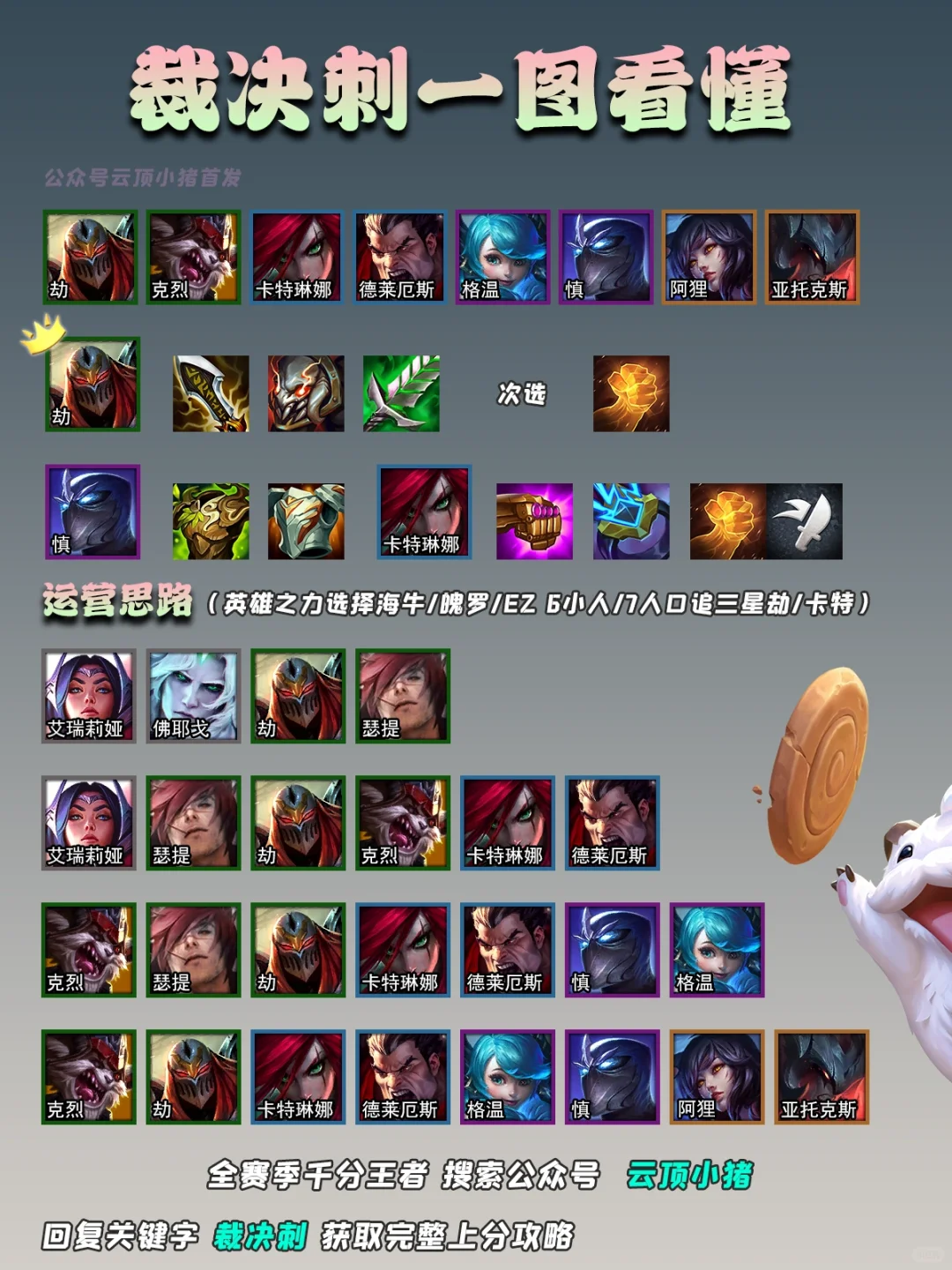 独家装备对基本都有分,劫卡特双三星就有登顶的能力了。