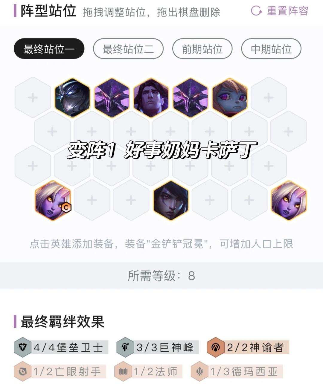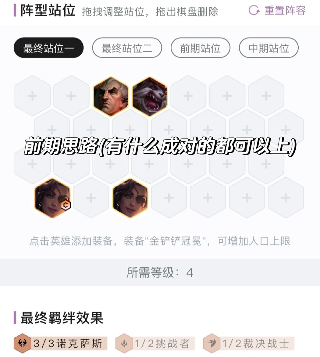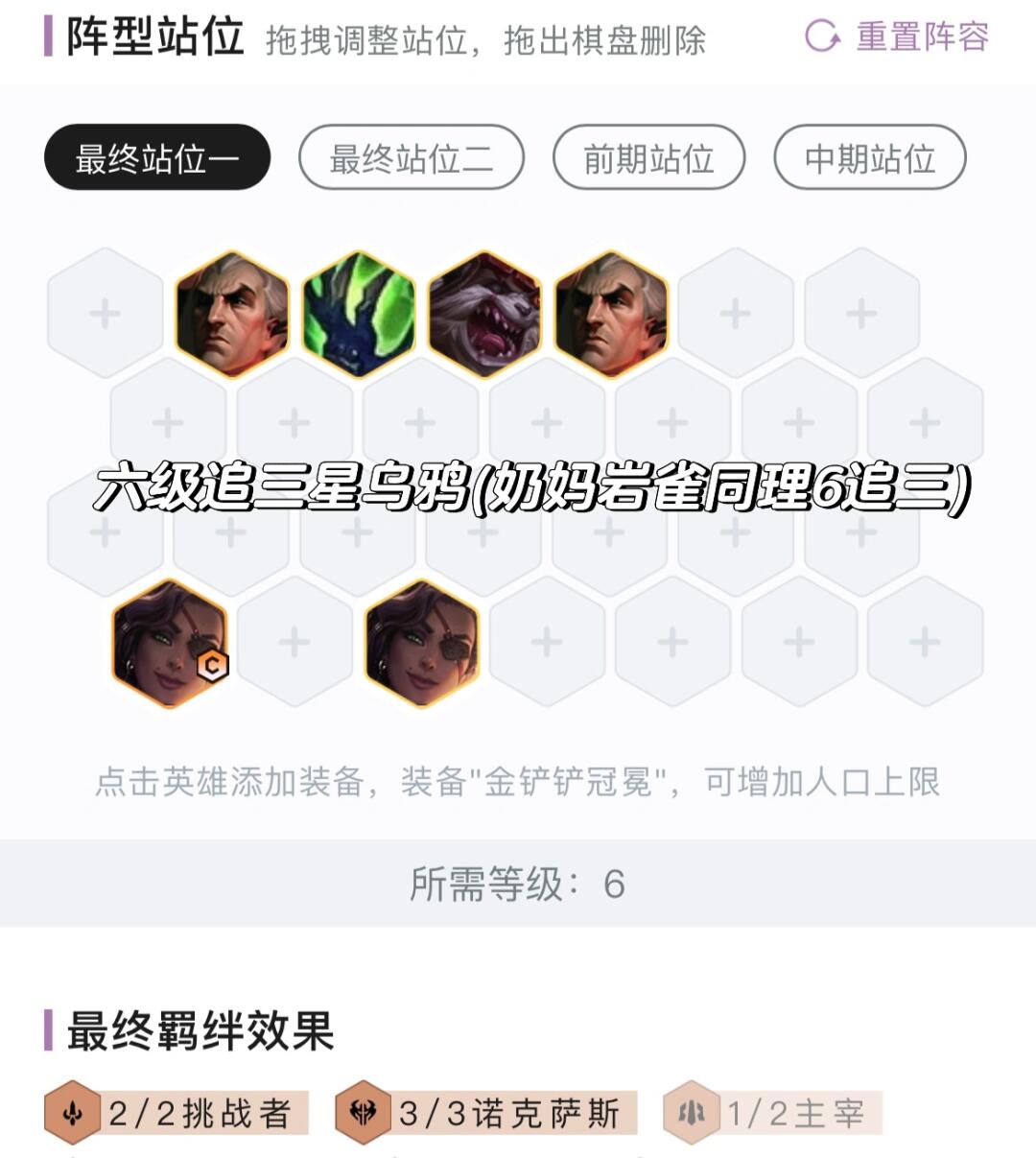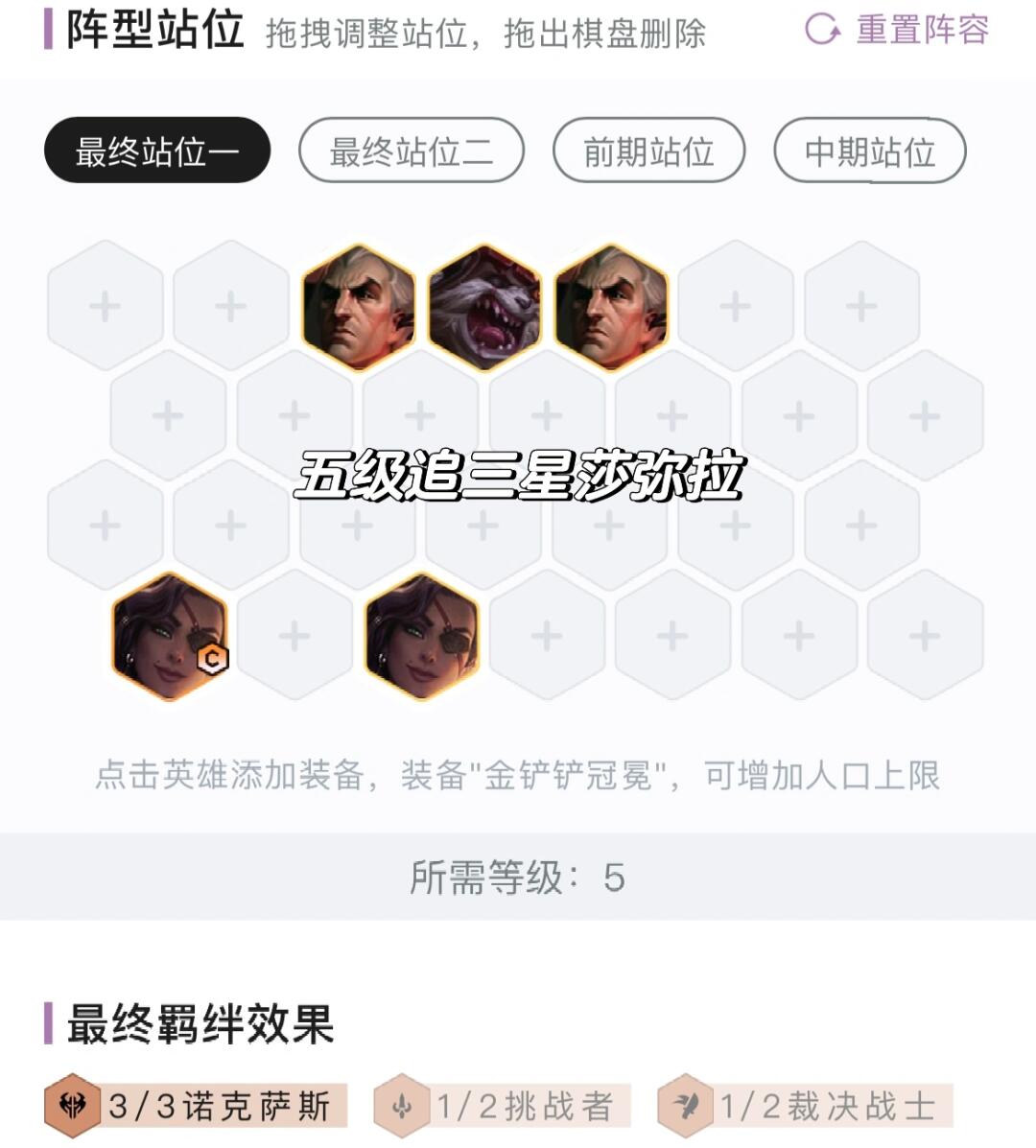 玩一费(诺克萨斯莎弥拉)就5人口追三星,玩二费岩雀瑟提和奶妈卡萨丁就6人口追三星,比较灵活。