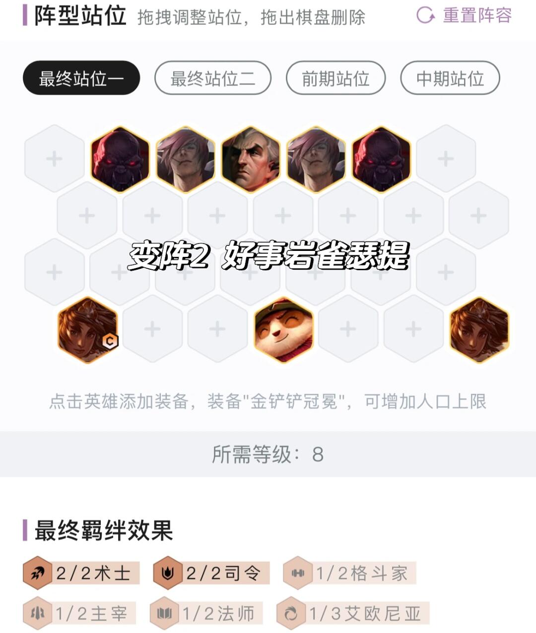 2、推荐三套玩法,个人觉得莎弥拉强度最高和运营难度最小,判断自己玩哪套的准则是装备契合度,越契合越强,牌占3/1,装备占3/2。