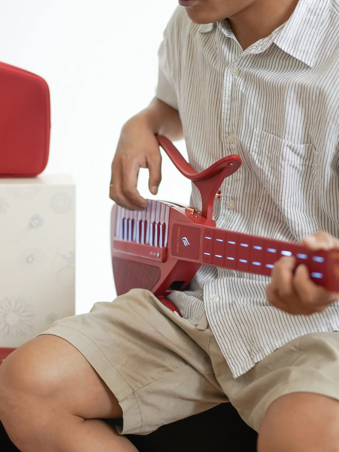 以前总觉得学吉他难,按和弦按到指尖疼,节奏也总跟不上,现在模块化设计能换拨片或键盘,“自动挡”伴奏一打开,我这种没基础的也能跟着弹出完整旋律,再也不用纠结左手怎么按和弦了!