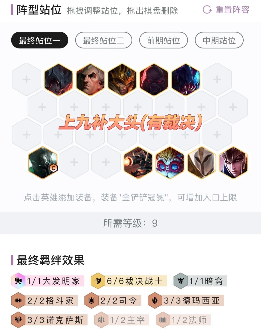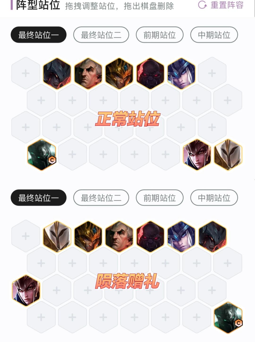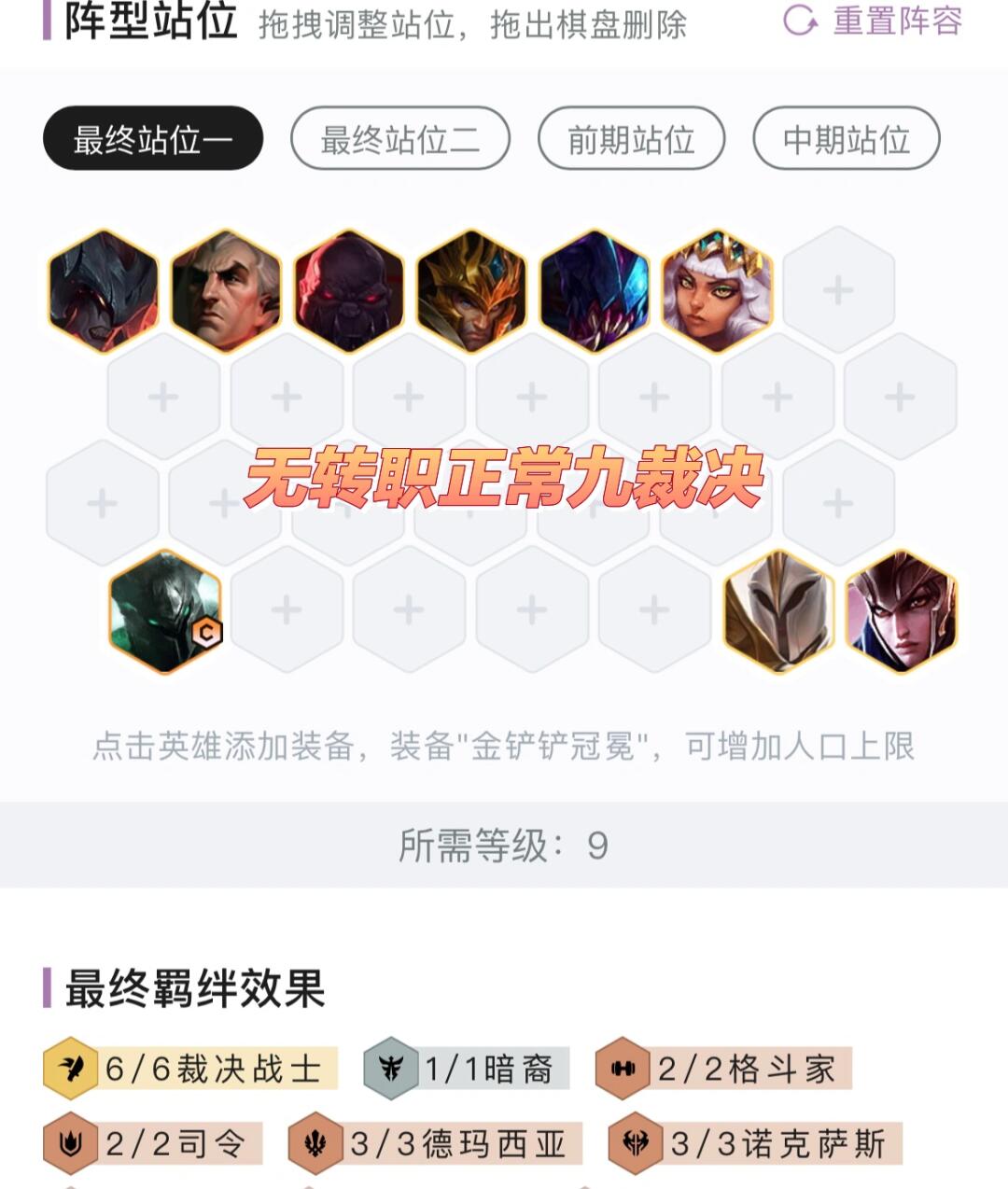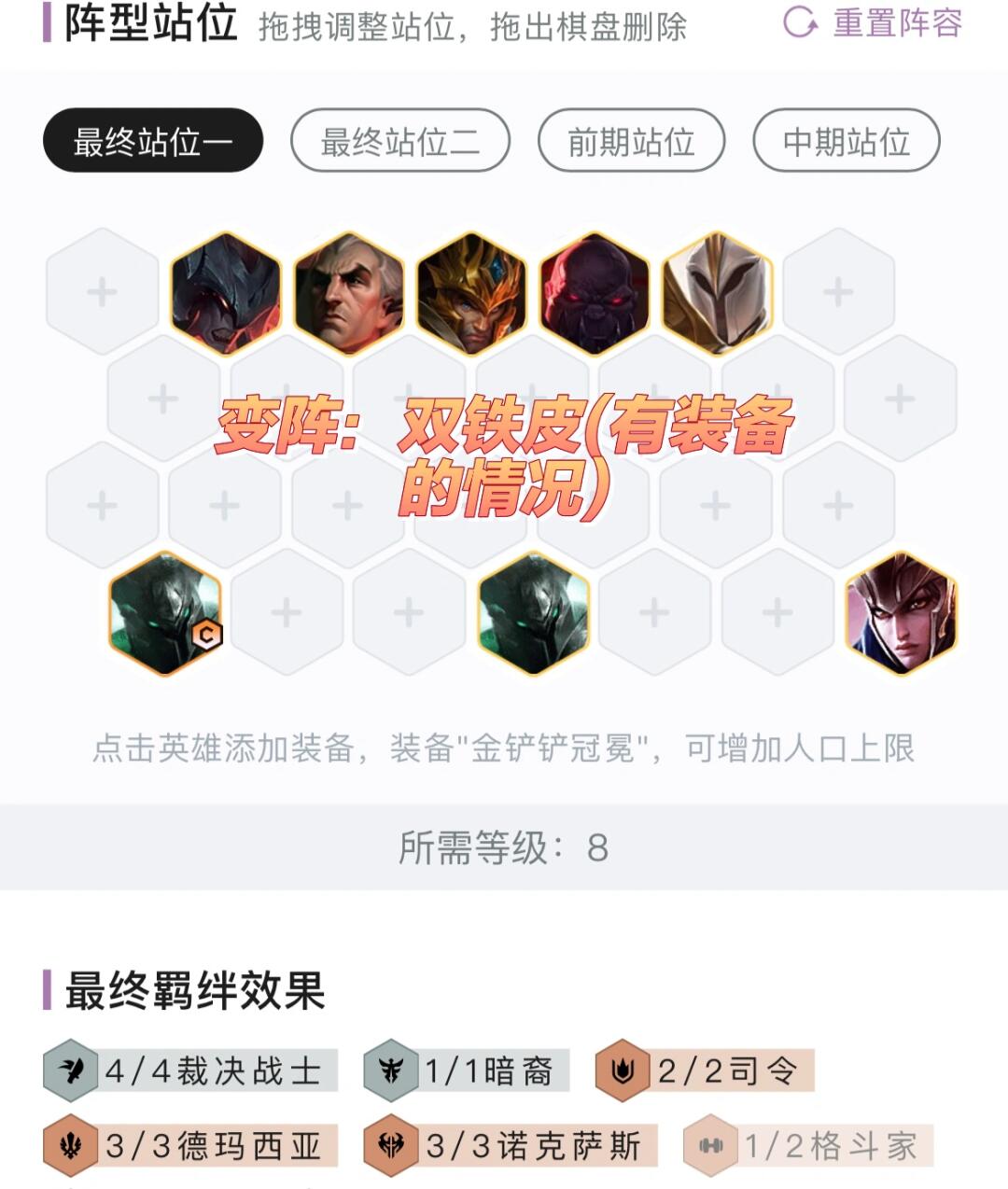 前期推荐三诺克萨斯过渡最佳,因为可以先叠一些属性,如果没有其他体系过渡也行,连胜优先。