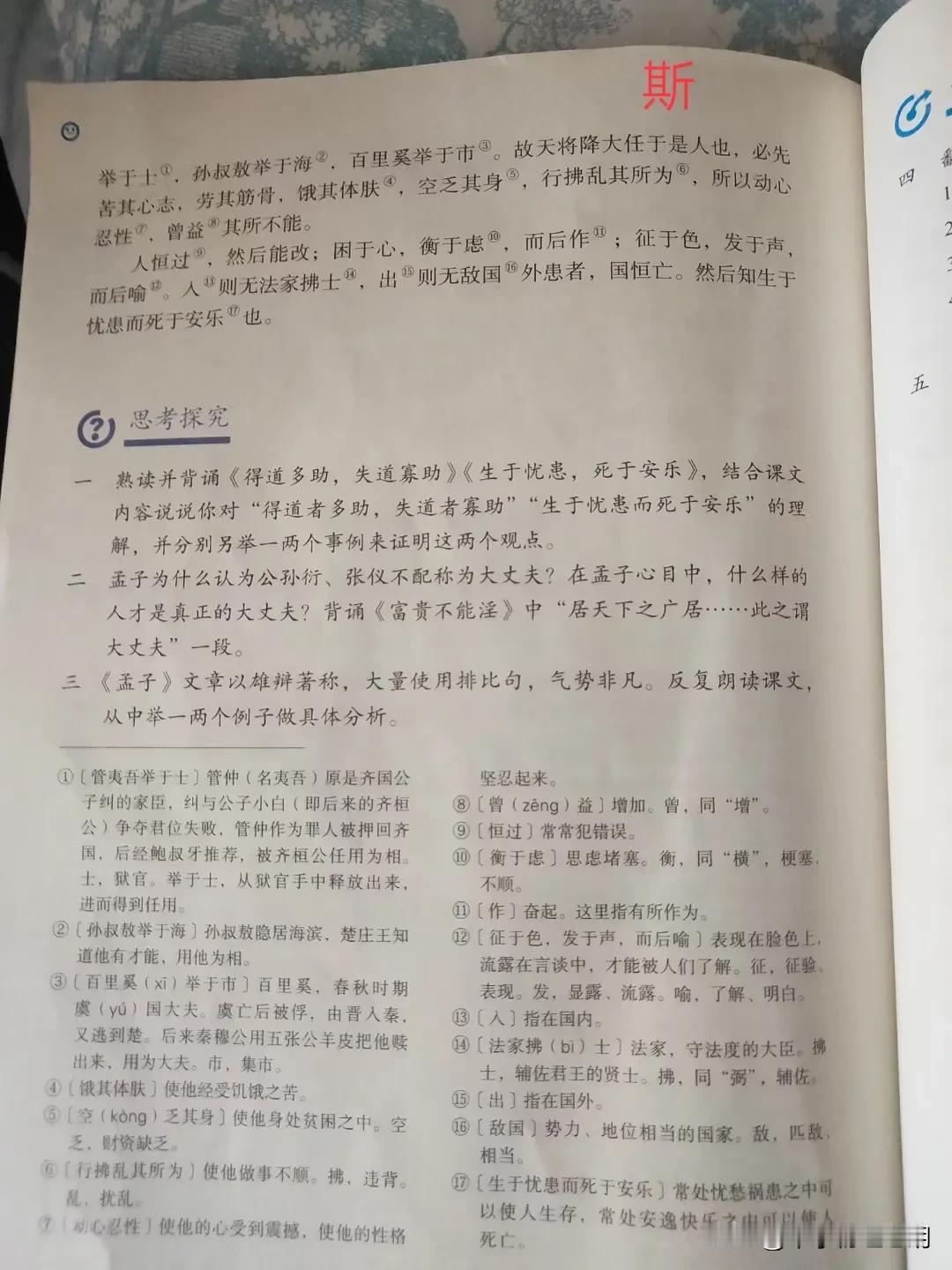 念书的时候老师教的是“天将降大任于斯人也”,现在的课本是“天将降大任于是人也”,