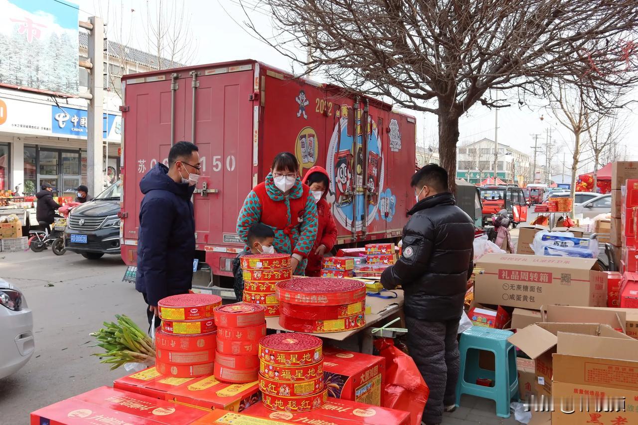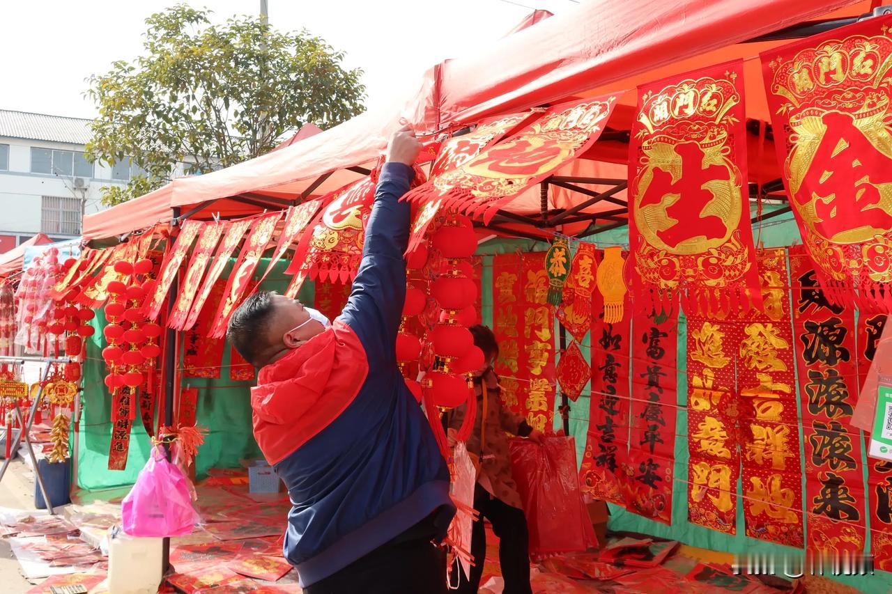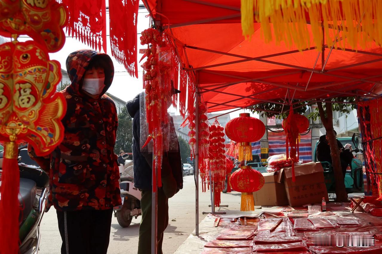 江苏邳州农村,年味渐浓,红彤彤的春联喜气洋洋,购买年货的人络绎不绝。 近几日的晴