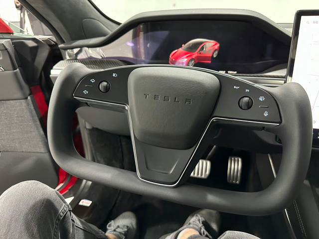 Model S/X 开始装配新方向盘了,主要改进有气囊喇叭以及给了摄像头调用快捷键。 另外,制作工艺由之前的隐藏缝线变成了很明显的缝线了,我更喜欢图2老款的无缝线。