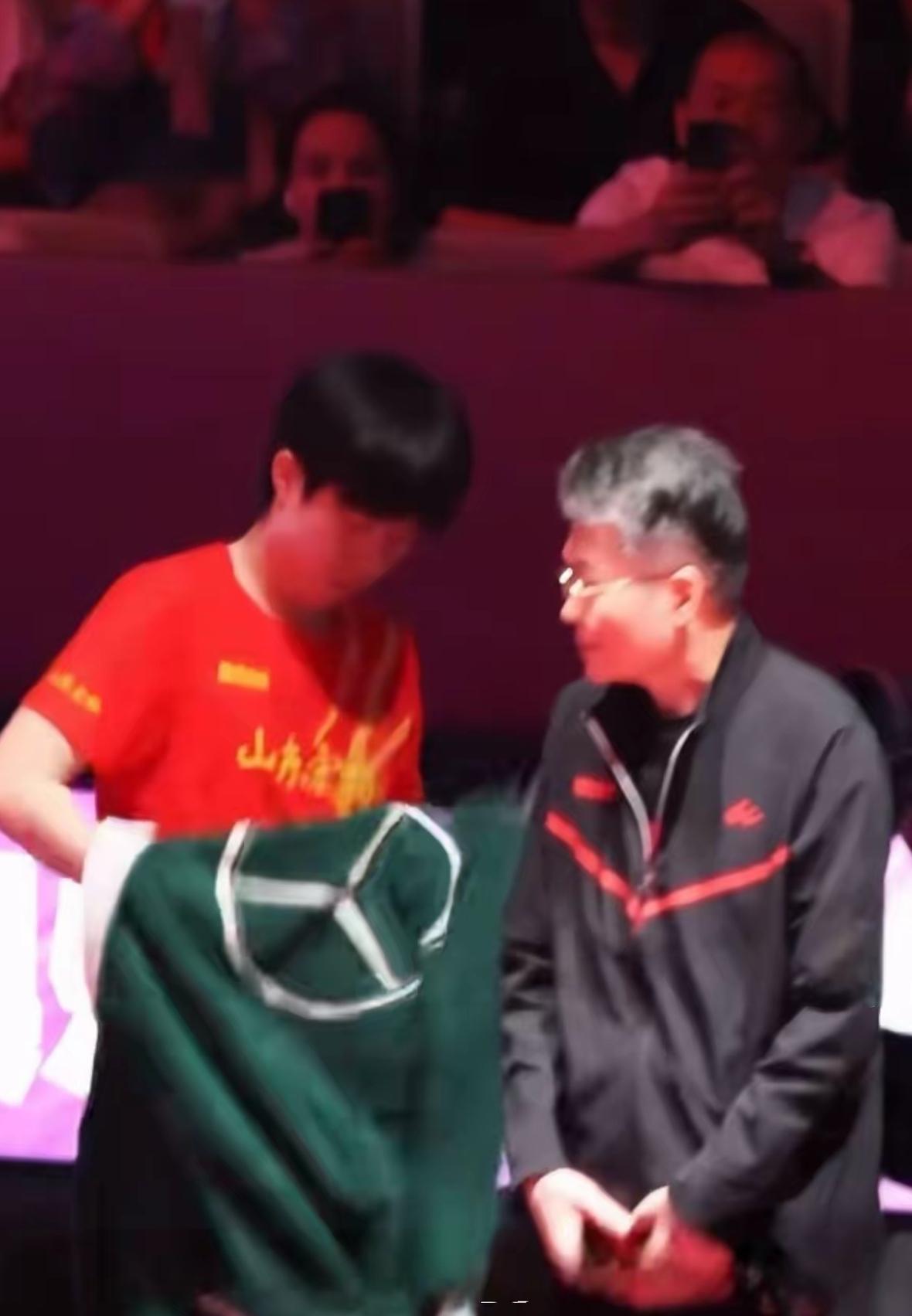 不会只有我发现了吧? 魏桥队的毛巾不一样啊! 王楚钦用的是墨绿色的, 又大又厚还带一个大logo 这豪华大logo都认识吧? 两天前大头跟奔驰互动, 这一块毛巾找到答案了! 该说不说, 这奔驰有点小气啊, 既然想突出想流量, 为啥不给魏桥队人手一块? 哈哈哈哈哈, 我想起来原因了, 很大概率应该是这样: