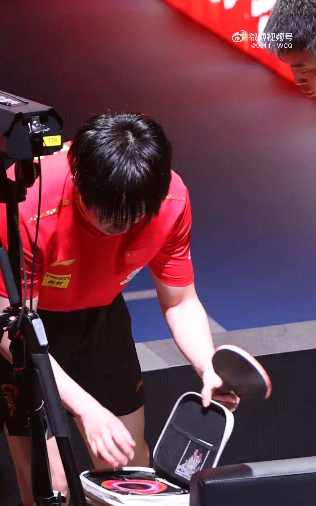 王楚钦的球拍包里还是和龙队那张合照耶!