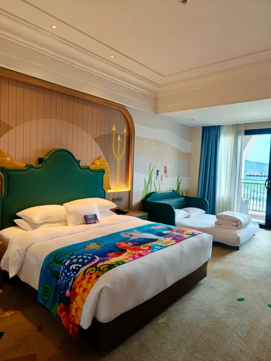 我们入住的是🌊海洋奇缘亲子房 ,推开门就被惊艳到了!敲大的观景阳台视野开阔,房间是海洋主题设计,不仅有独立浴缸和干湿分离浴室,还贴心配备了儿童床、儿童拖鞋、儿童牙刷等亲子用品,真懂妈妈心啊!🧡♥️