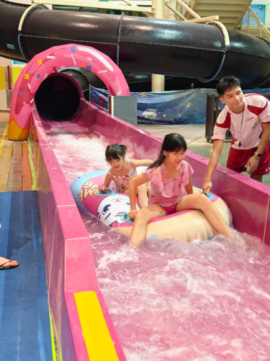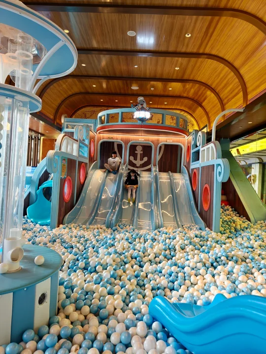 酒店内的横琴湾水世界是孩子们的天堂!包括刺激的滑道、亲子水寨、百米漂流河等多个丰富的水上娱乐项目。室内外泳池都好棒,童趣廊也是宝宝喜欢的地方,滑梯🛝波波池又是疯玩一圈。