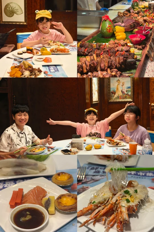 酒店的自助早餐和晚餐都好丰盛!海鲜、甜品、刺生应有尽有🤩🤩还有现煮的云吞面,好美味!除了自助餐厅,还有中餐厅和茶餐厅可以选择哦!