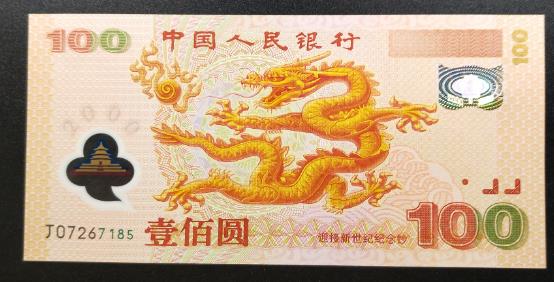 千禧龙钞是第一套塑料钞,是2000年11月28日发行的,在当时来说能发行塑料钞的国家并不多,官方名称叫作迎接新世纪纪念钞,因为主图是中国龙,所以说就俗称为千禧龙钞。 发行量1000万张,面值100元,发行量要比第一张建国钞减量了很多,但面值又跟着上来了,在当时能够愿意花100元去兑换这张纪念钞的人并不算多,并且兑换人群以大中城市为主。 现在全新币带47的市价在1200—1300元,收购价在1000—1150元;带4的市价在1300—1400元,收购价在1100—1200元;无47的市价在1400—1500元,收购价在1200—1300元。 这些价格都是全新币的价格,一些品相差的价格就非常低了,甚至有一些只能面值回存银行了,所以说一定要注意品相问题。