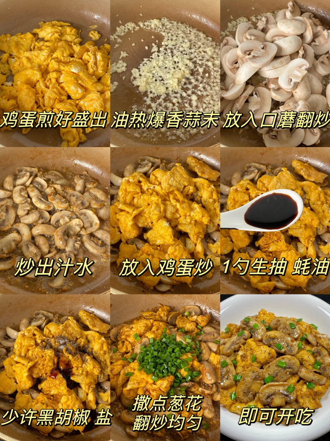 今天分享的是口蘑炒鸡蛋,巨好吃! 鲜香四溢,软嫩适可,拌点米饭嘎嘎好吃!口蘑多汁,鸡蛋嫩滑,妥妥的下饭菜,一上桌就秒光!喜欢吃口蘑炒蛋的姐妹快来做做吧! 食材:口蘑 鸡蛋 葱蒜 做法简单,步骤看图集~