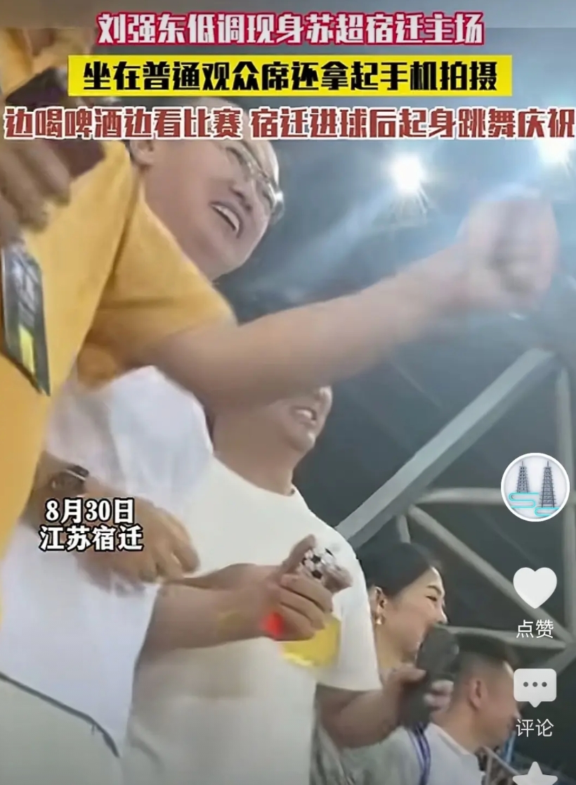 前天晚上,京东总裁刘强东在苏超宿迁对阵淮安比赛的现场,他和身边人在庆祝的过程中喝起了啤酒,这个啤酒就是凤凰泉啤酒。