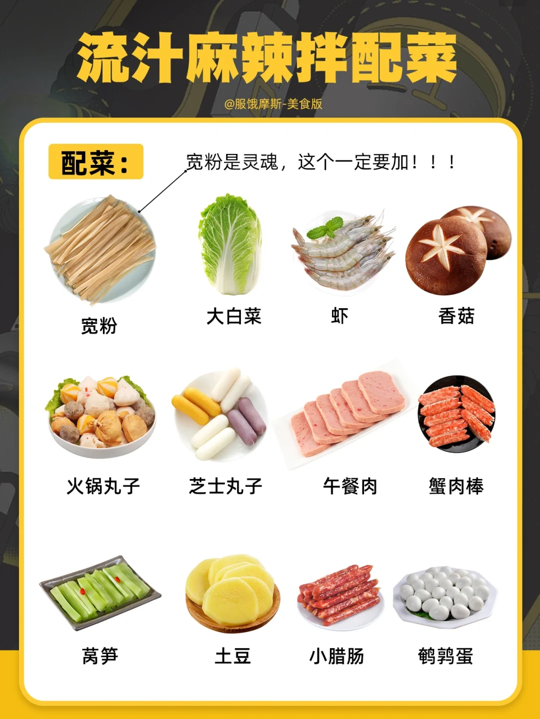 🥗食材准备:火锅丸子、宽粉、金针菇、藕片、方便面、蒜末、辣椒面、芝麻酱等
