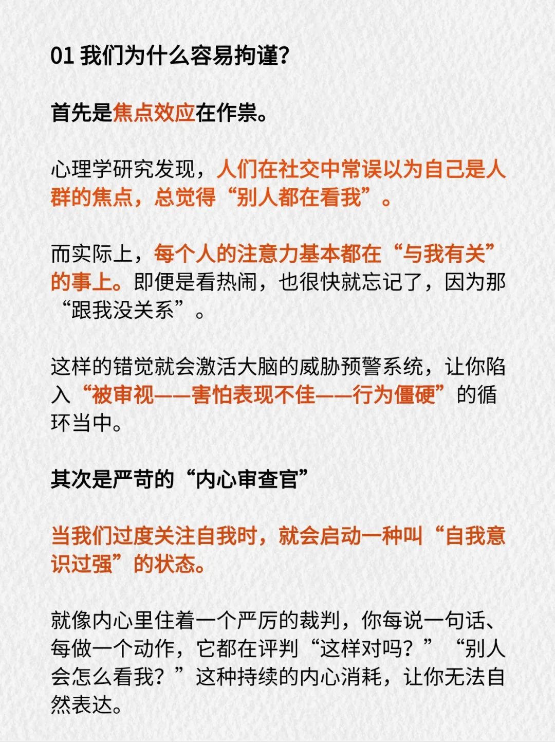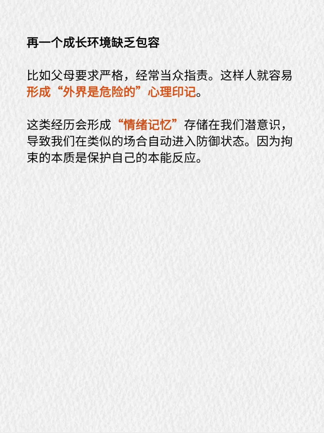 拘谨不是你的性格缺陷,而是你保护自己的方式。真正的改变不是否定这部分,而是让“放松的自我"有更多出场机会。
